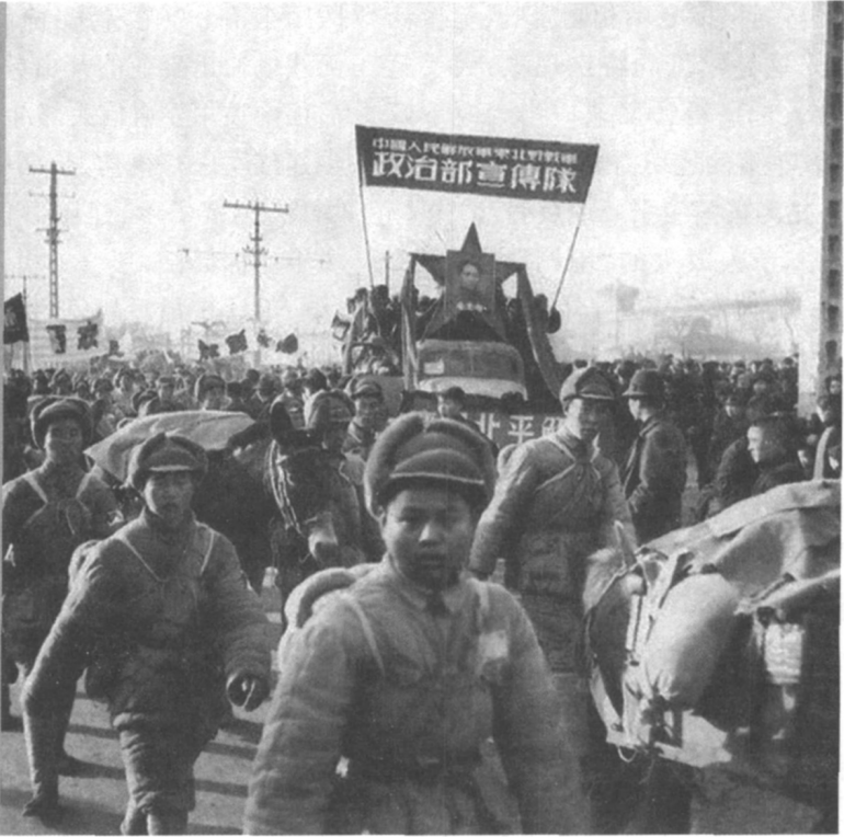 ▲图片说明:1949年1月31日,中国人民解放军东北军区宣传队宣传车首次进北平。