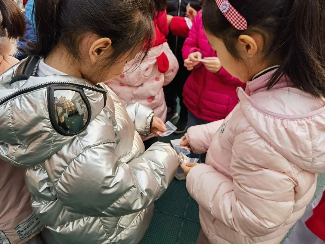 在讲故事的最后,贺启公向小朋友们分发了提前准备好的麦种和豆种,并引导孩子们进行了种子的交换。