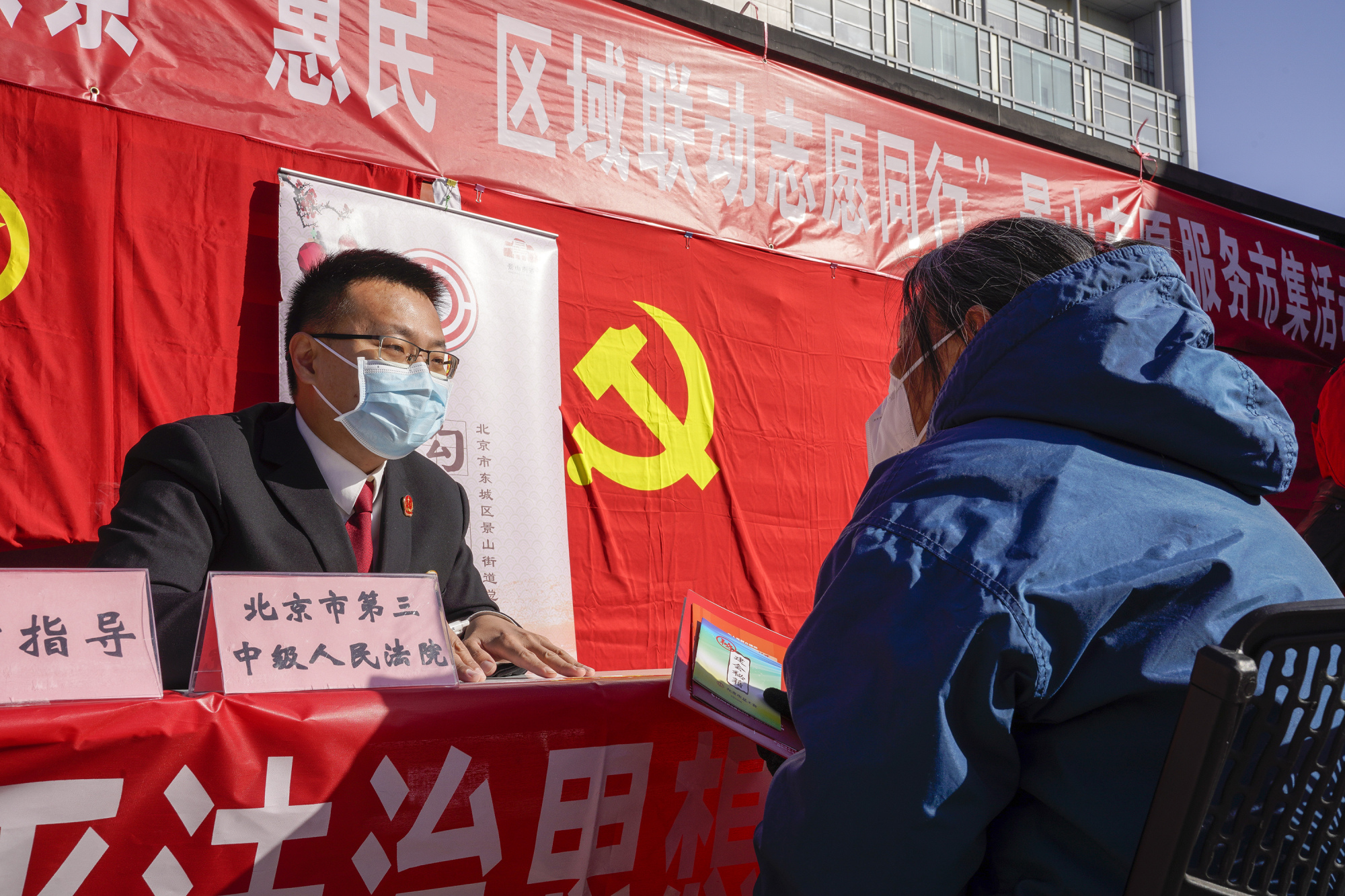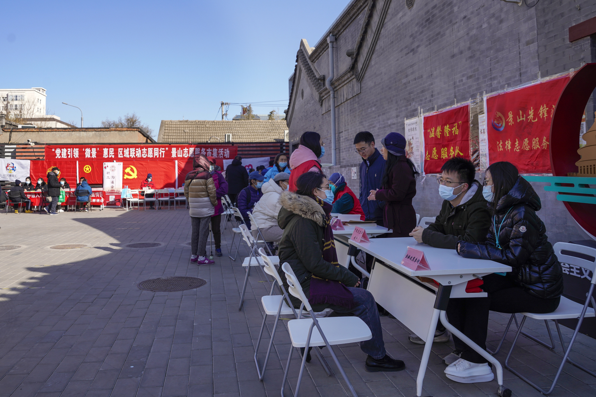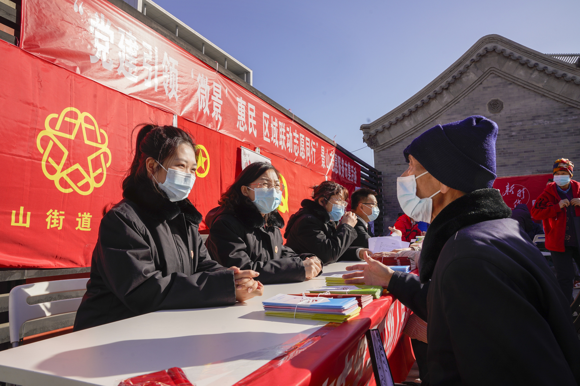 3月1日,美后肆时景山市民文化中心广场内,景山志愿服务市集热闹开市。