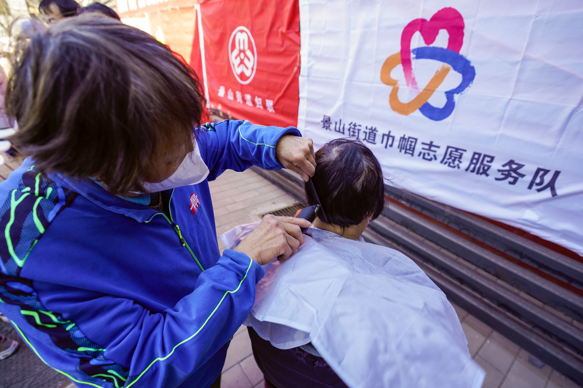 来自各行各业的志愿者们摆摊“花式”送服务,为市民提供义诊、法律咨询、就业政策咨询等咨询宣传服务,并提供理发、理疗、磨刀等多种多样的便民服务。