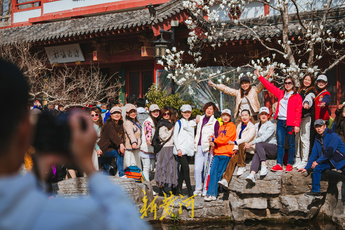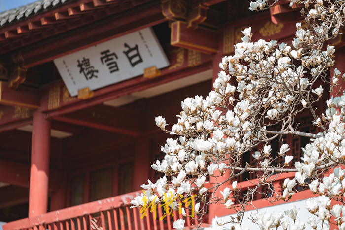 3月4日,春暖大地,泉城气温逐步回升,当日最高气温上升至23℃。随着春意的到来,白雪楼前白玉兰开始绽放,温润的白色花瓣,透出淡雅香气,吸引众多游人前来打卡拍照。