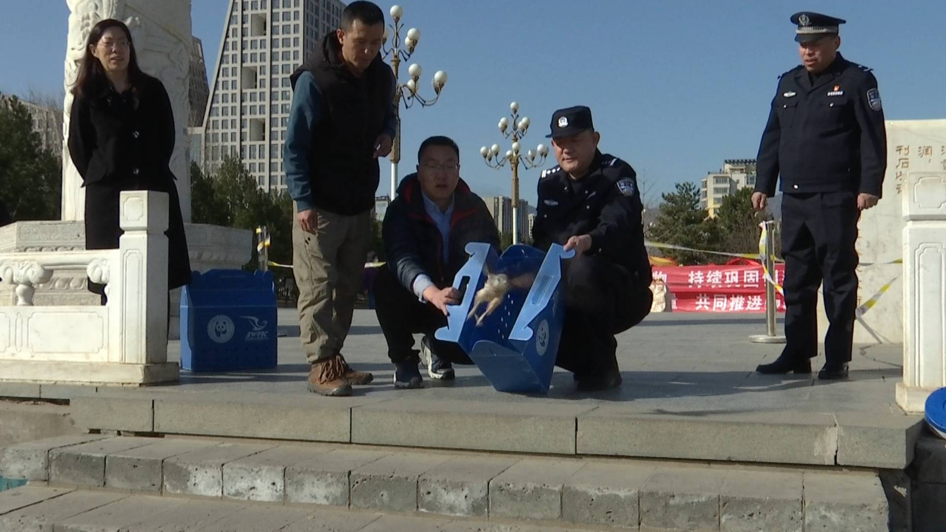 活动还放归了三只国家二级保护动物红隼。工作人员刚刚打开纸箱,红隼就展翅高飞,翱翔天际。工作人员告诉记者,红隼为隼科、隼属,是体长30cm的小型猛禽。红隼在门头沟区全域范围均有分布,永定楼门城湖流域附近环境秀美,分布着众多的野生动物,是它们的原生栖息地,所以选择在此进行野外放归。