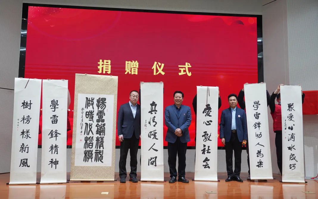 中国社会主义文艺学会书画专业委员会王少跃主席、宋伯军副主席、著名书法家丁子同先生、韩国强先生向曜阳美煜石景山志愿服务总站捐赠4幅书法作品。