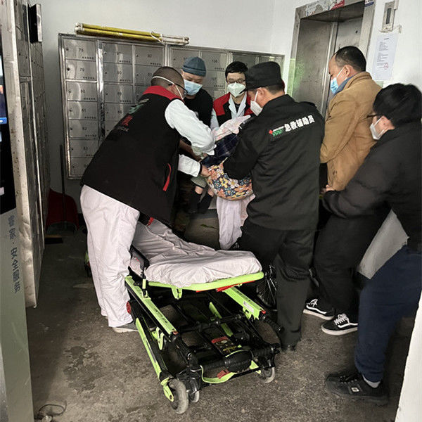 赶到现场后,急救中心医护人员已经到达,社区工作人员第一时间安抚了老人以及家属情绪。因居民属于失能老人长期卧床,无法独自下楼,并且家住在18层,但电梯只能到达17层,于是,社区工作人员协助医护人员一起抬着老人下楼到达电梯间,大家争分夺秒把老人送上了救护车,前后仅用15分钟左右便抵达医院。