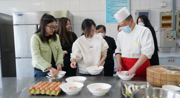 活动现场,大厨现场指导女职工们如何挑选食材、切备蔬菜,抓拌腌肉、涂刷酱料,还细致的讲解油温、火候、勾芡、翻锅、出锅、装盘等烹调过程的注意事项。美食出锅后,大家争先恐后,手抓筷夹,品尝着自己亲手制作烹饪的美食,每个人都洋溢着笑容。