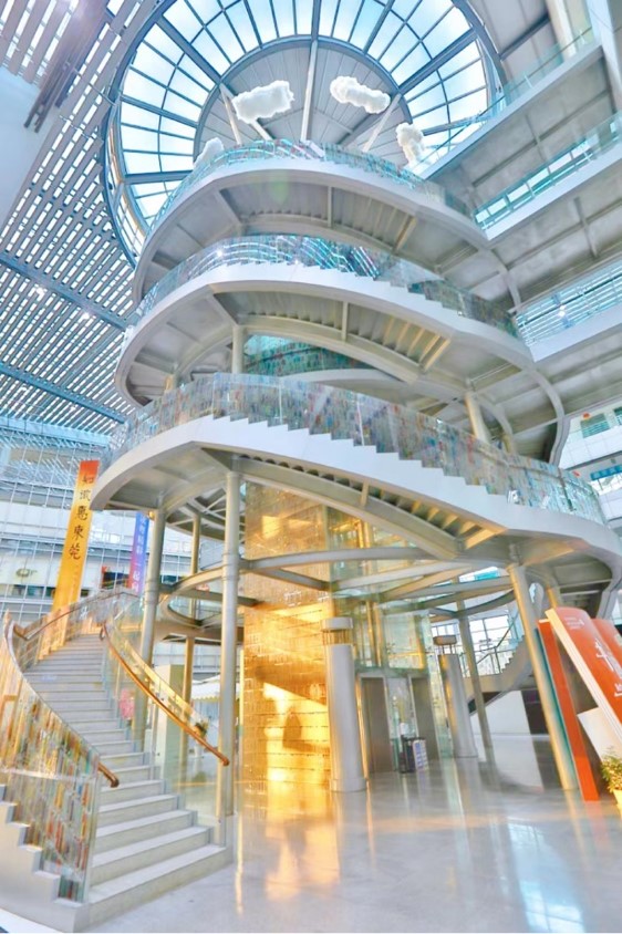东莞图书馆巴别塔是有感知的知识之塔,伴随读者的触摸与参与不断成长。以书为砖,用书装饰旋转楼梯,在“大小环境”两个维度下,不同距离、不同角度呈现出书的内涵意蕴。