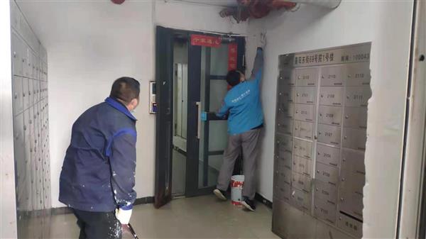 在景阳东街第一社区,楼道内的墙面出现墙皮脱落、墙面破损等现象,不仅影响环境秩序,也存在一定的安全隐患。社区联合物业公司经过现场查看墙面破损情况、商议制定修复方案后,由物业公司迅速安排施工人员进场,对破损的墙面进行整体粉刷,通过“补妆”扮靓楼道新面貌。