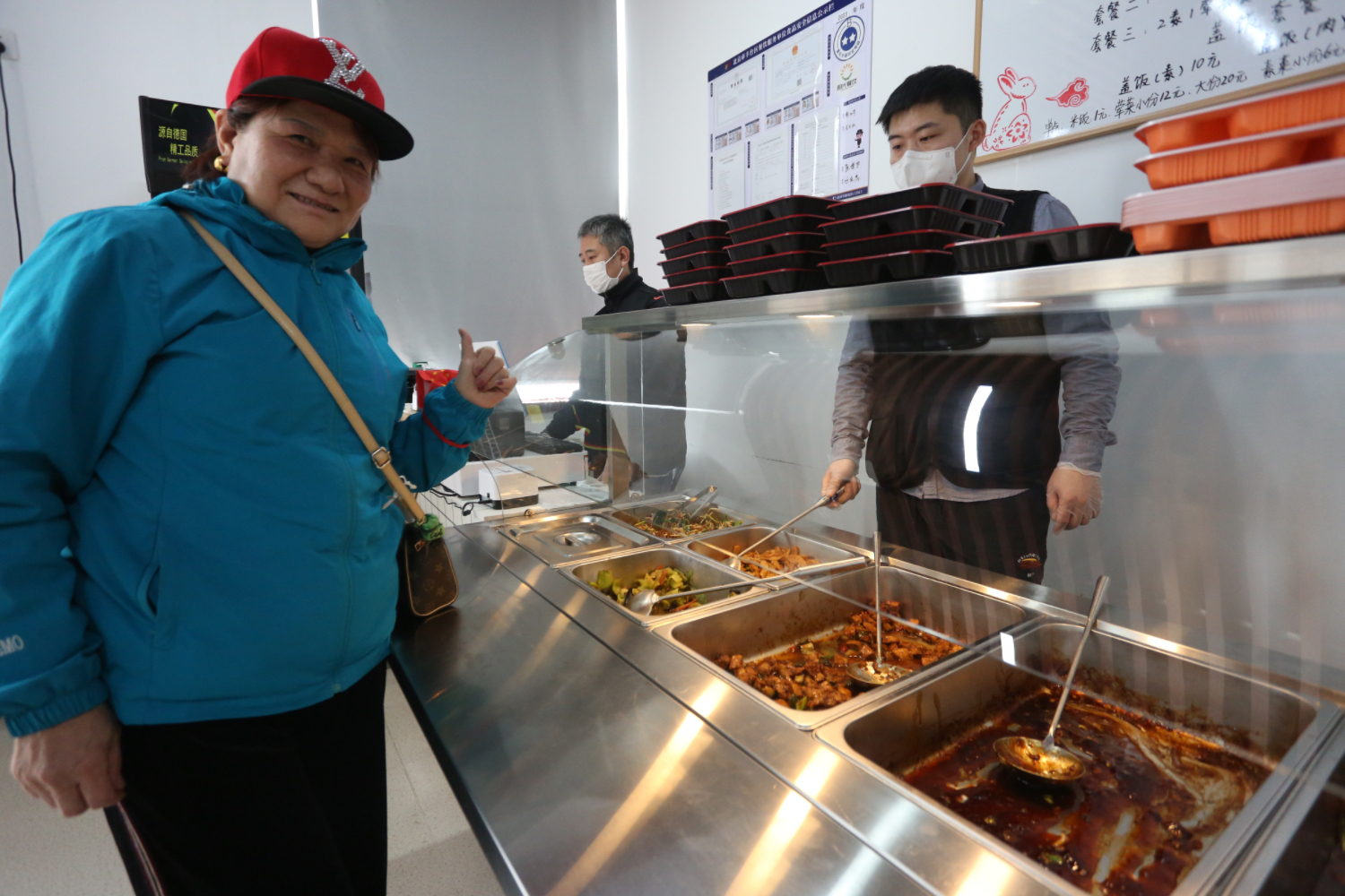随着工作人员打开餐箱,“老年饭桌”内瞬间菜香四溢。酱爆鸡丁、红烧鸭肉、炒合菜等5个菜品,搭配着软硬适中的开花馒头、米饭等主食。老人根据实际需要选择单点或套餐,价格从6元到10元共两个档次,荤素搭配可自行选择。