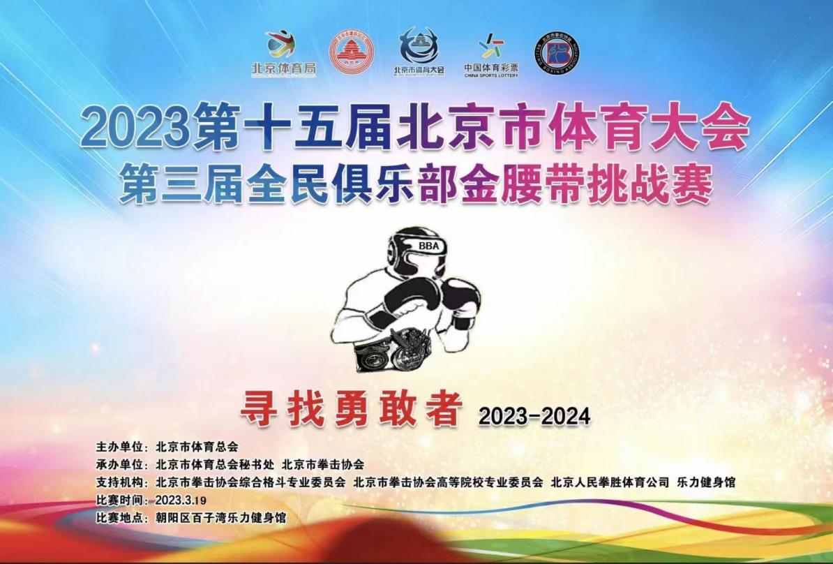 为了贯彻落实《国务院办公厅关于促进全民健身和体育消费推动体育产业高质量发展的意见》,丰富广大群众的赛事活动,促进北京大众体育文化增长,更好地满足大众健身结合赛事推动运动多元化需求。北京市拳击协会在北京市体育总会的号召下,统筹谋划、精心组织举办的2023年第十五届北京市体育大会第三届全民金腰带金腰带挑战赛于3月19日在朝阳区百子湾乐力健身馆举行。本次赛事由北京市体育总会主办,北京市体育总会秘书处、北京市拳击协会承办,北京市拳击协会综合格斗专业委员会、北京市高等院校专业管理委员会协办,人民拳胜俱乐部、乐力俱乐部、圣明拳击俱乐部等作为支持单位。