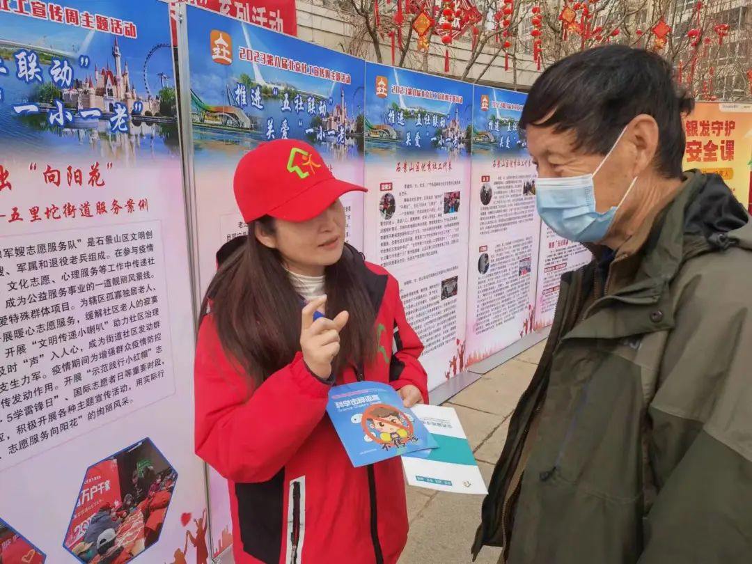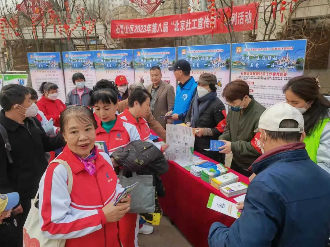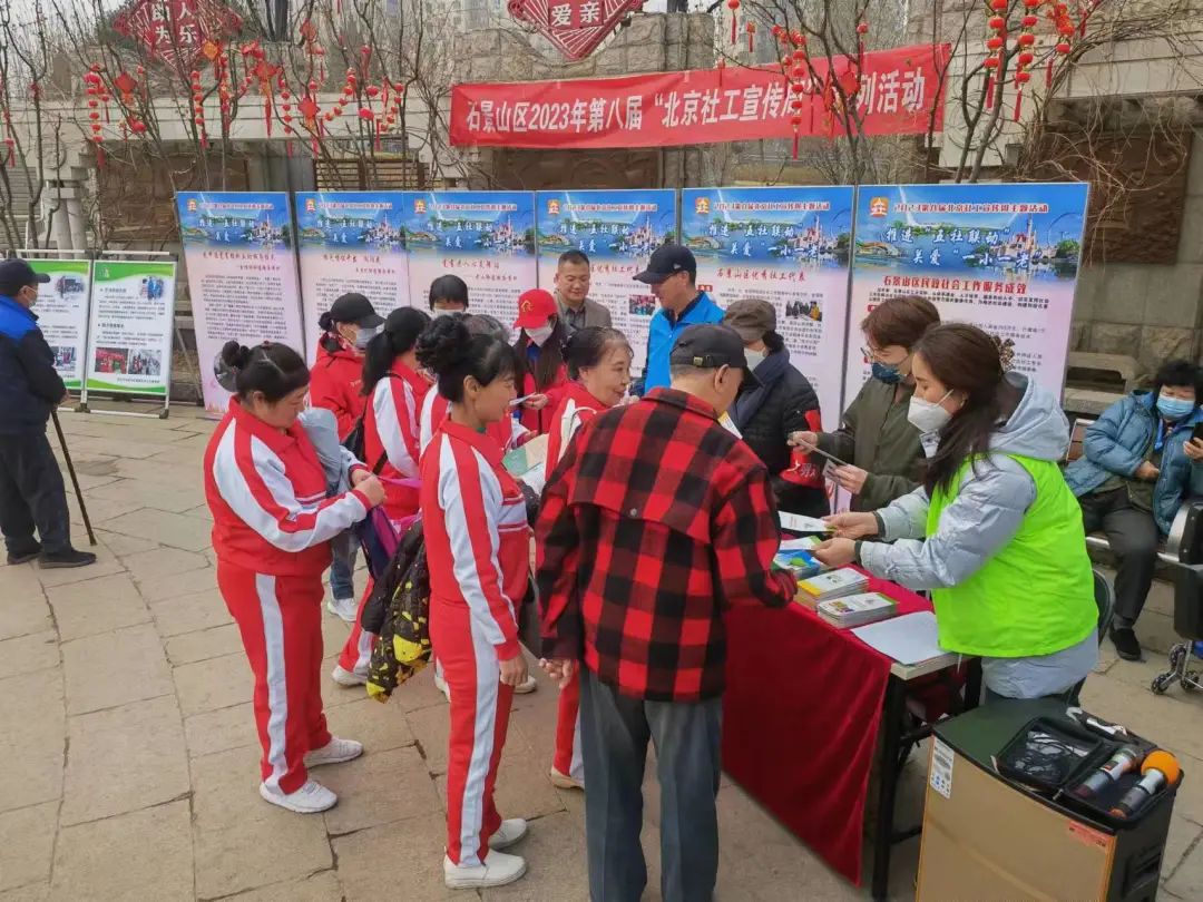 3月21日,石景山区第八届“北京社工宣传周”系列宣传活动启动仪式在鲁谷街道半月园广场举行。