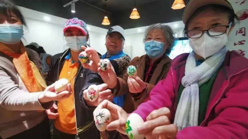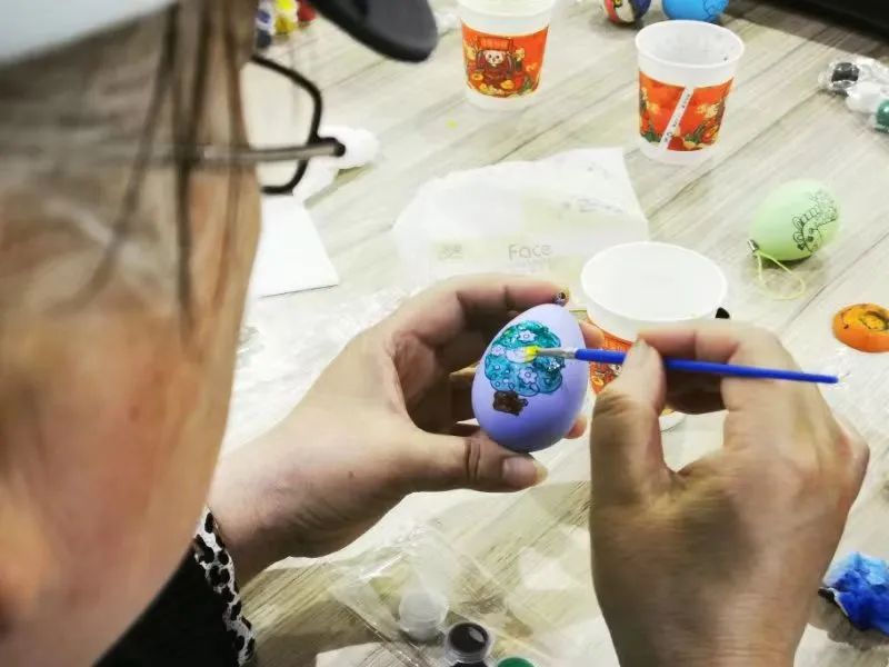 接着居民们开始动手制作DIY彩蛋,选择自己喜欢的颜色涂在蛋壳上面作为背景,再用彩笔描绘出各式图案。