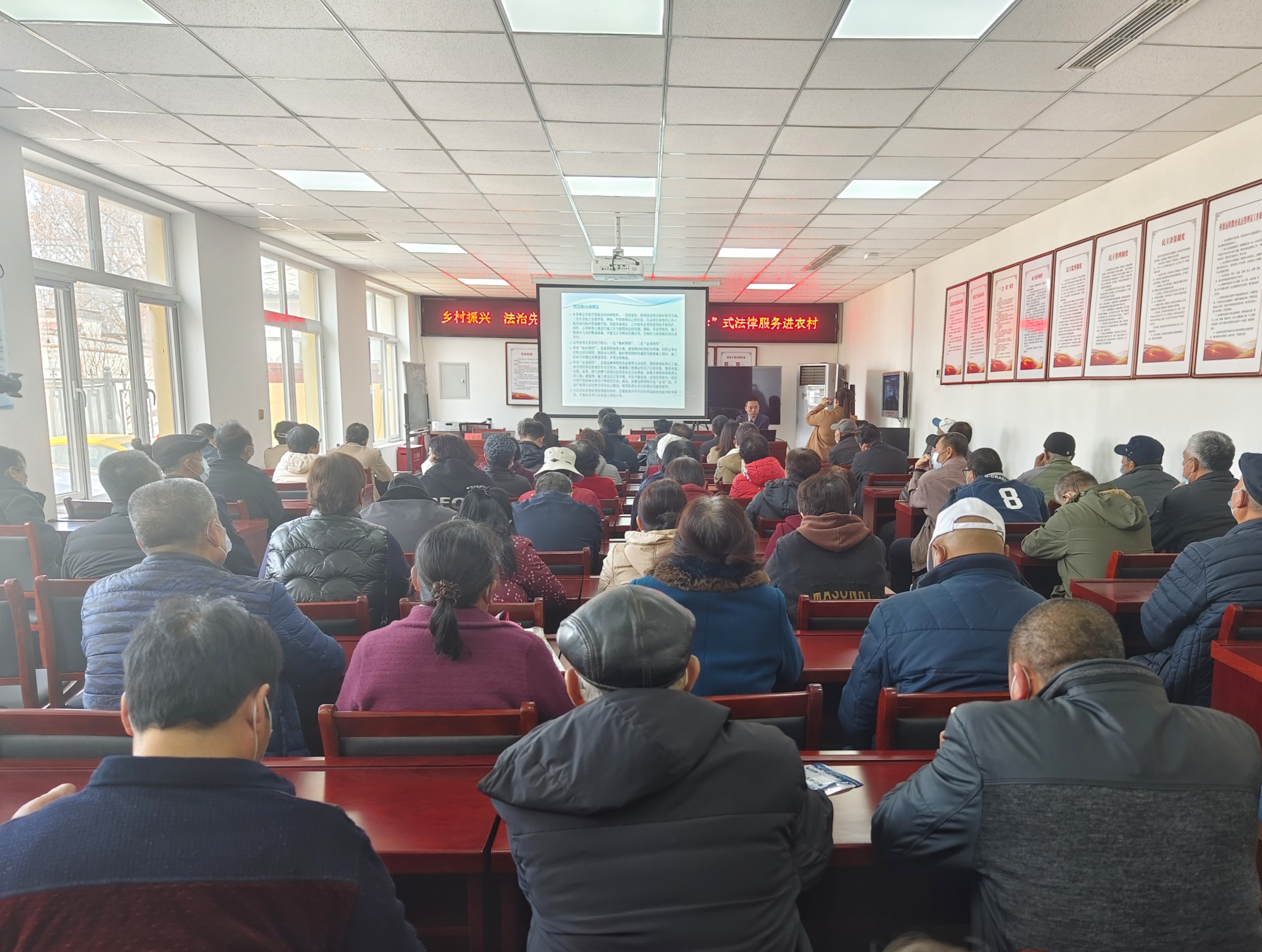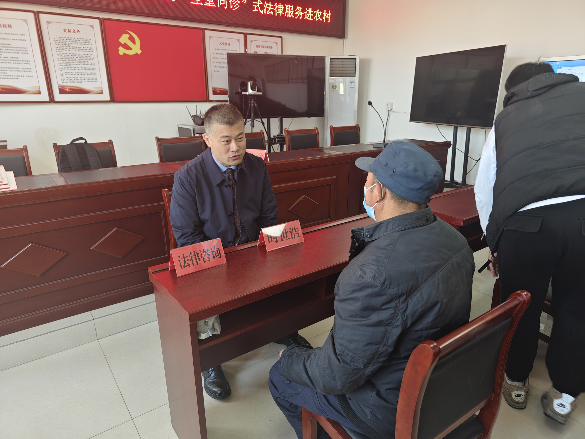 3月25日上午,农工党北京市委社会和法治工作委员会与雷锋杂志理事会组织律师党员和理事会会员走进十里堡镇河漕村委会,在群众身边搭起台子“坐堂问诊”,开展普法讲座,为群众提供法律咨询,着力解决群众反映强烈的突出问题,让矛盾纠纷化解在源头。