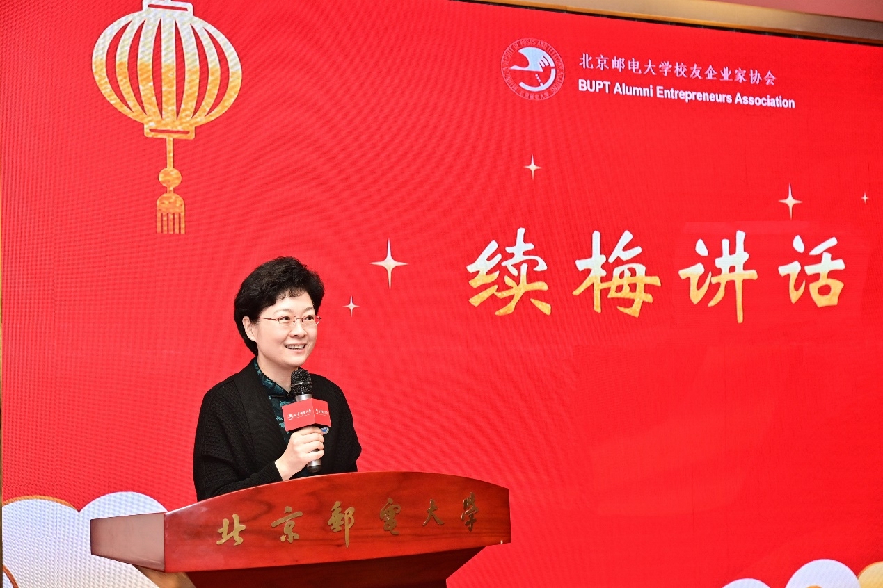 续梅指出,校友是学校最宝贵的资源,“校友走多远,北邮精神就传承多远”。多年来,校友为母校树立了良好声誉,要珍视这笔宝贵的精神财富,引导学生以优秀校友为榜样,将北邮精神代代相传。续梅谈到,“校友与学校互为荣光”。当前,北邮正紧抓新机遇,努力创造新辉煌,希望广大校友更好担当“智囊团”和“思想库”角色,为学校建设积极建言献策;更好发挥桥梁和纽带作用,为母校发展铺路搭桥。续梅表示,母校永远是校友可以依靠的坚定后盾和精神家园,欢迎校友“常回家看看”,学校将始终把校友工作摆在突出位置,更加积极主动地做好联系、服务、支持工作,希望全体北邮人携起手来,共同为把学校建设成为信息科技特色世界一流大学不断努力。
