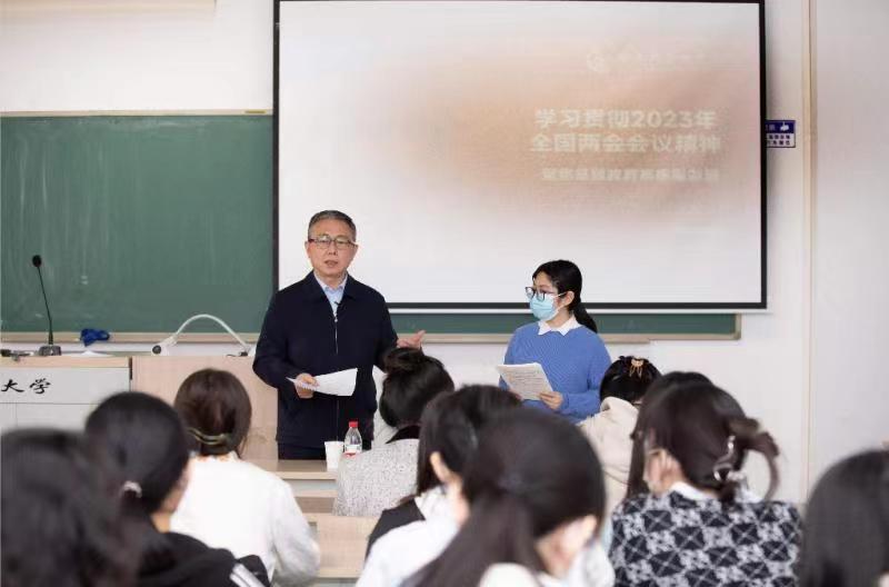 孟繁华带领同学们深刻领会了《政府工作报告》中提出的“发展更加公平更高质量的教育”,强调构建“更加公平”和“更高质量”的教育,需要教育工作者不断努力,勉励同学们励志向学,未来做新时代的好老师。