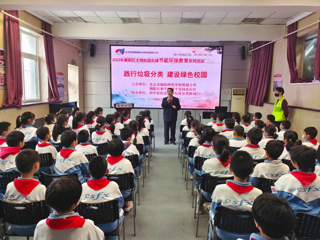 垃圾分类不是一项短期性、阶段性的工作,需要久久为功、常抓不懈。为进一步提升居民群众垃圾分类意识,养成良好的垃圾分类习惯。3月22日,和平街街道和平家园北社区新时代文明实践站联合朝阳师范学校附属小学、和平街街道生活垃圾分类驿站,在朝阳师范学校附属小学多功能教室开展了以“践行垃圾分类 走进美丽校园”为主题的宣讲活动。