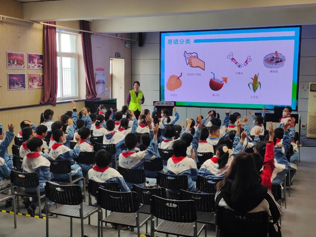 讲师通过生动有趣的视频动画,向学生们普及环保知识,激发了学生们学习垃圾分类知识的兴趣。活动还通过闯关互动、互问互答等形式,让学生们反思生活中存在的浪费资源、污染环境等不良现象,引导学生们在日常的学习和生活中,积极参与环境保护,践行垃圾分类。