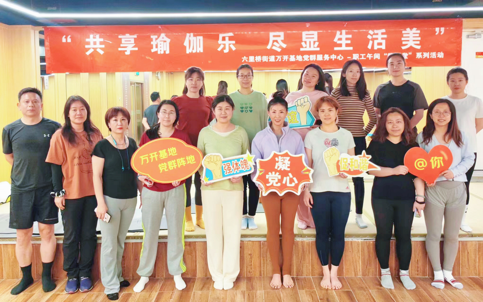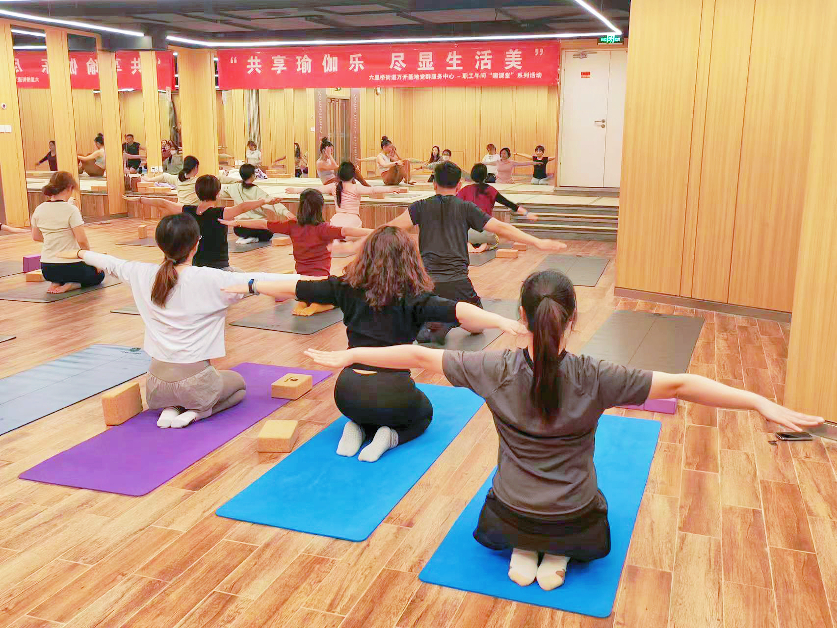 为进一步增强楼宇党员群众的凝聚力,丰富“两新”领域职工业余生活,充分发挥党群服务中心阵地平台作用。近日,由六里桥街道万开基地党群服务中心主办的职工午间“趣”课堂系列活动之“共享瑜伽乐 尽显生活美”瑜伽体验课程,在万开基地“有时锻炼健身房”拉开帷幕。