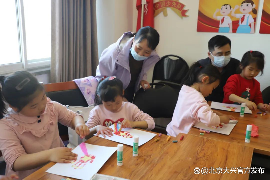 志愿者引导孩子们仔细观察五星红旗,了解旗面颜色、五角星等蕴含的神圣意义。通过认真制作手工作品,为伟大祖国送上美好祝福。