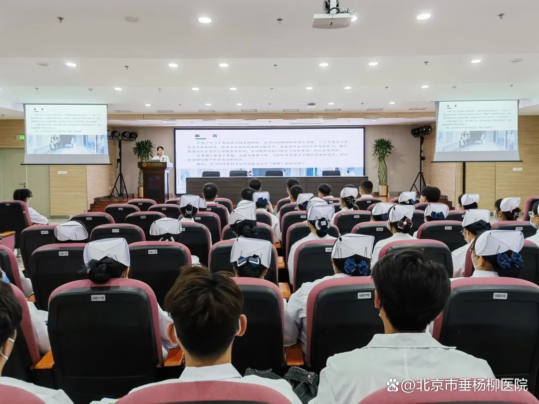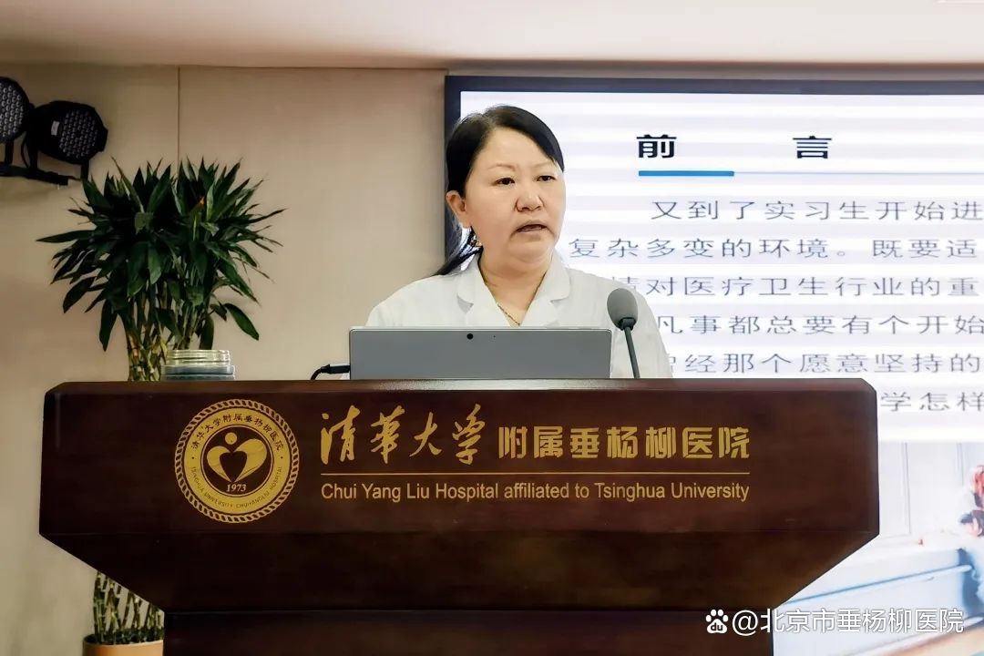 李春营首先对实习生来院学习表示热烈欢迎。随后,她简要介绍了医院概况、护理工作概要、护理教学等情况,并以“实习生如何尽快适应临床”为题进行了讲解,引导护理实习生建立正确的职业观以及职业信念,激励大家不忘初心,努力学习,学以致用。