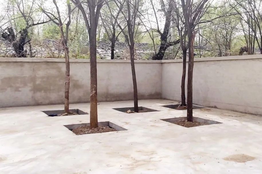 改造策略:清理杂物,平整场地。由于场地西侧与南侧和周边区域存在较大高差,在边界新建挡土墙;东侧靠近居民房屋,安装铁艺围栏。