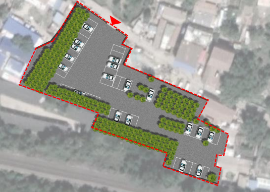 改造策略:地面平整,铺设混凝土地面;新做护栏,修复围墙。 对场地内占用物进行清理,平整场地,新铺混凝土地面,划分停车位。
