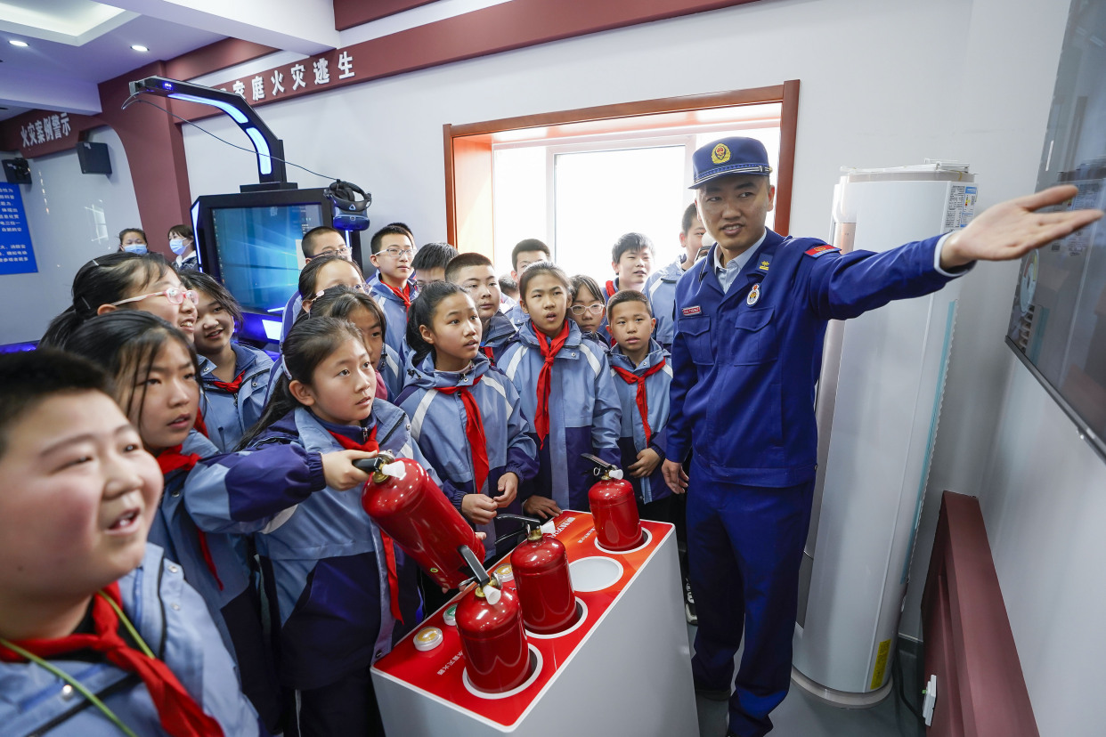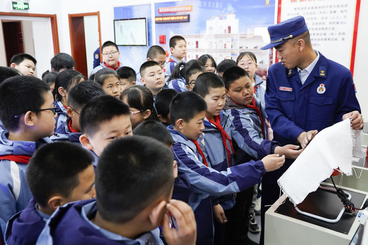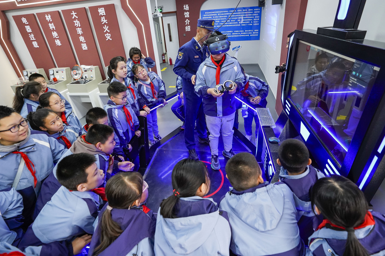 4月13日,石家庄桥东区五一路小学学生走进桥东区应急消防科普教育基地,在讲解人员指导下对VR家庭火灾逃生、模拟大屏灭火、逃生通道等板块进行亲身体验,现场气氛活跃,学生们积极参与。