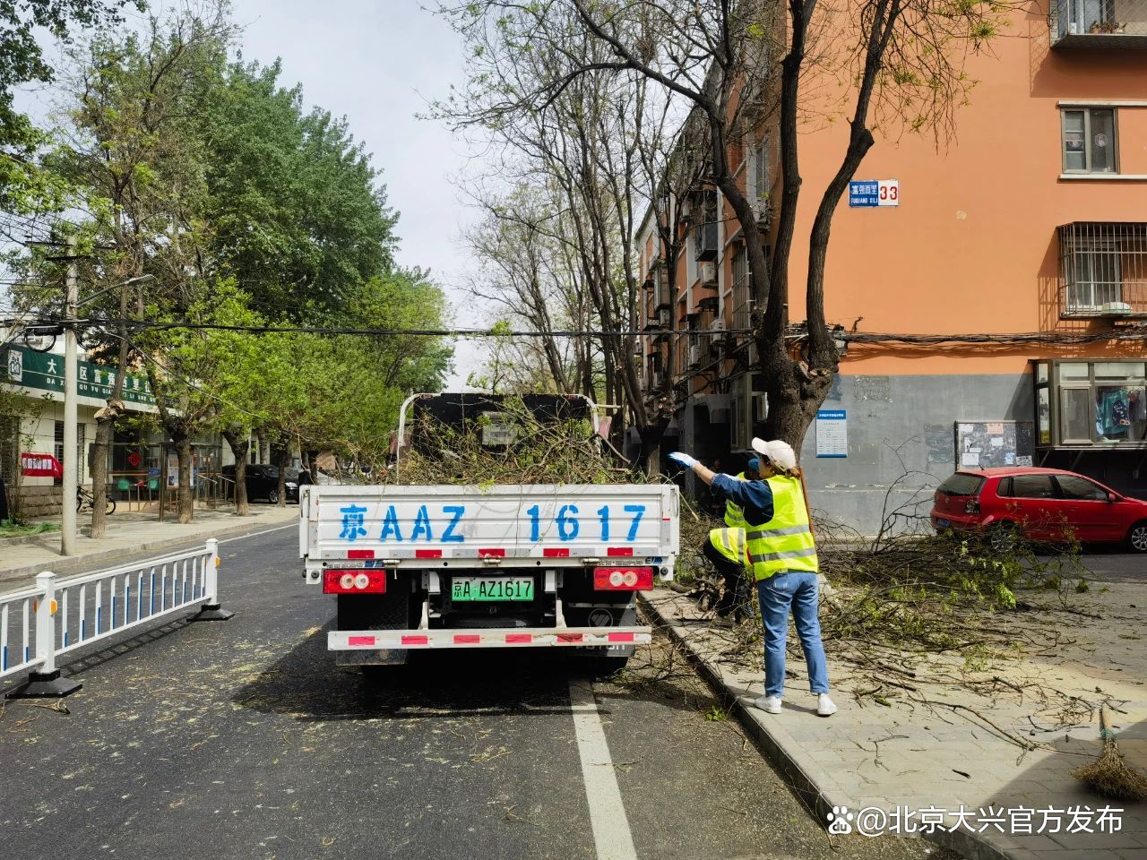 为稳步推进环境“微治理”,消除因树木疯长和枯树枝带来的安全隐患。4月13日,大兴区兴丰街道富强西里社区组织进行树枝修剪行动,对社区多余树枝进行安全“美容”作业,抢抓春天树木生长宝贵时机。