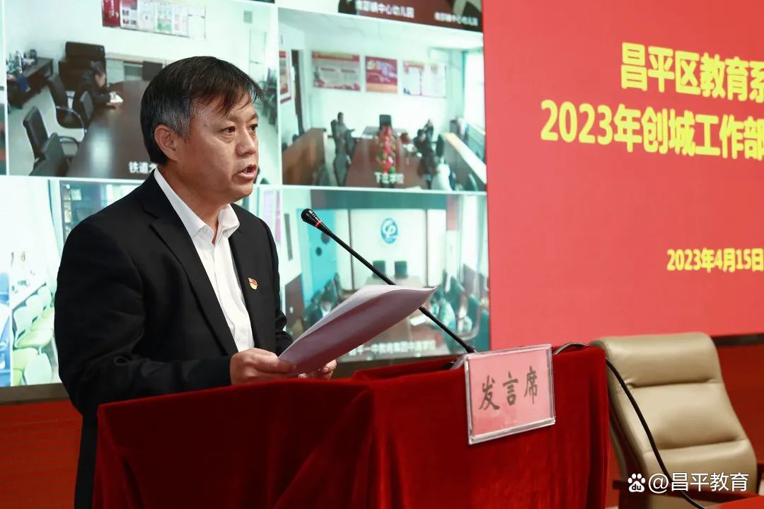 4月15日,区教委召开昌平区教育系统2023年创城工作部署推进会。区创城办专职副主任孟利群同志,区委教育工委、区教委领导班子成员出席会议。各中小学、幼儿园党政一把手及创城工作相关负责人参加会议。会议由区委教育工委副书记、区教委主任、区政府教育督导室主任苏俊山同志主持。