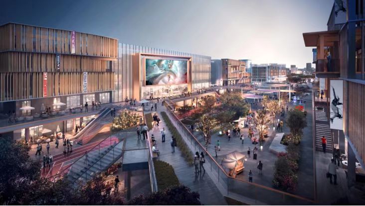 首开LONG街位于霍营街道,总建筑面积达15.4万平方米,由南北两区组成,南区以商业为主,北区以产业办公为主,还将有一片3.2万平方米的城市绿洲贯穿其中。