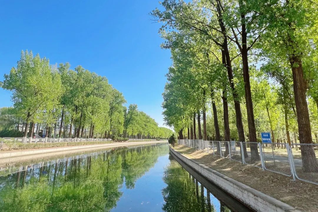 北石槽镇域内京密引水渠,河岸两侧绿树成荫,景色宜人。