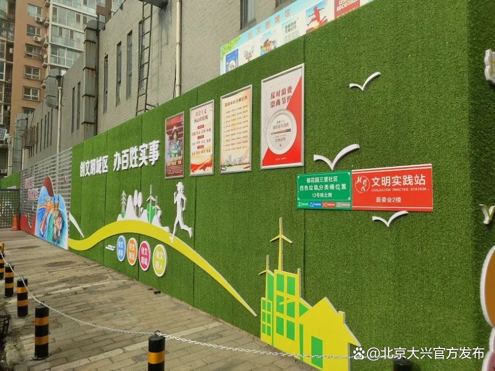 宣传发动 墙面开花,文化润家楼体墙面是社区的“衣衫”,是广大居民对社区环境的第一印象,为提升社区形象,社区在六栋居民楼墙面设置了特色主题装饰,让红色文化、垃圾分类知识、和谐宜居文化上墙。同时还在车棚、围墙处加装围挡、装饰,促进社区文化建设,营造文明和谐的社区氛围。