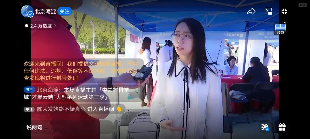 作为“才聚云端”系列活动之一,招聘会采用线下+线上相结合的形式,海淀融媒开展了入校招聘和带岗直播活动。直播中介绍了通过网络投递简历的平台与方式,让未能到现场的同学也可以线上了解企业参与招聘,提升就业服务对接精准度。