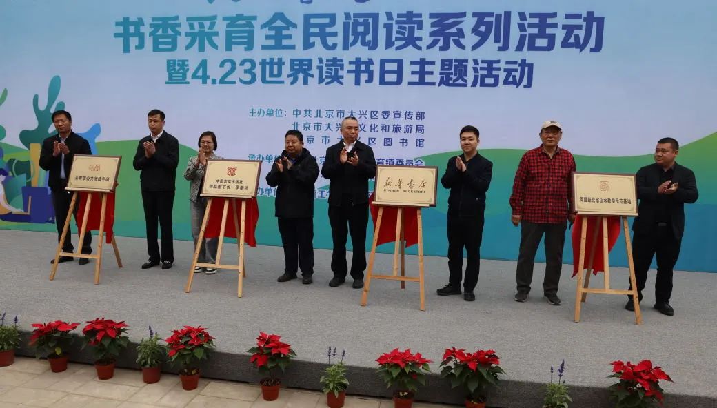 活动现场,为采育镇首家公共阅读空间、首家新华书店、“精品图书悦·享基地”、北宗山水教学示范基地进行揭牌,这也标志着将共同把阅读空间建设成为集文化、交流、休闲等多重功能为一体的新阵地,成为采育镇又一个文化地标与文化名片。