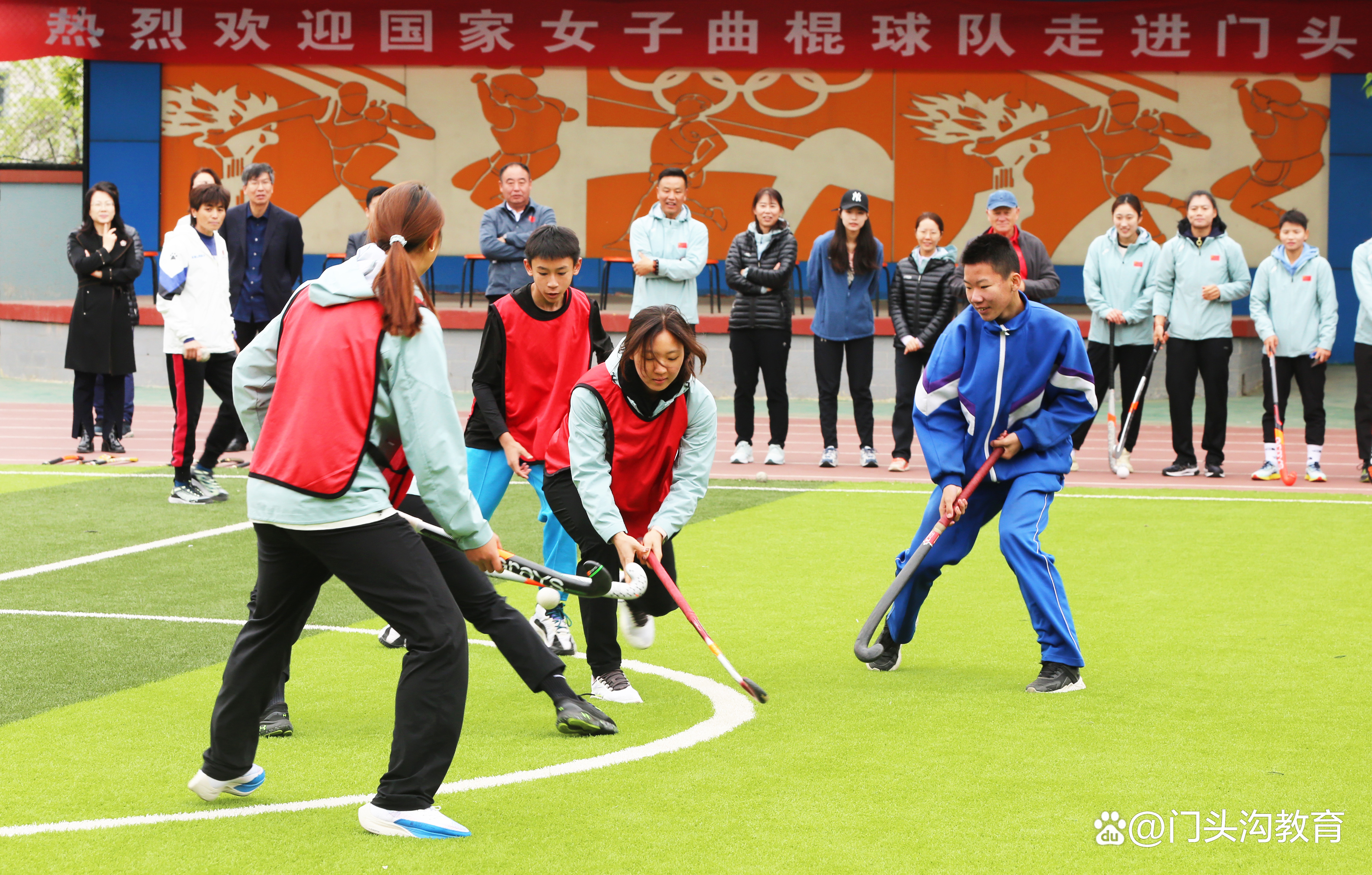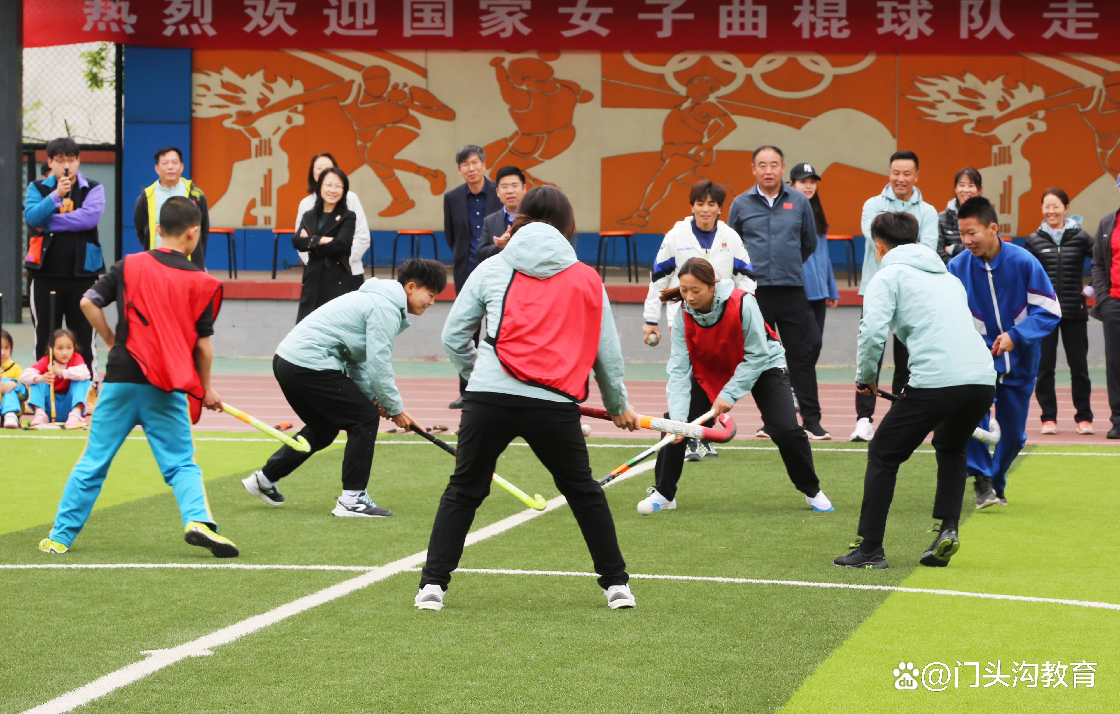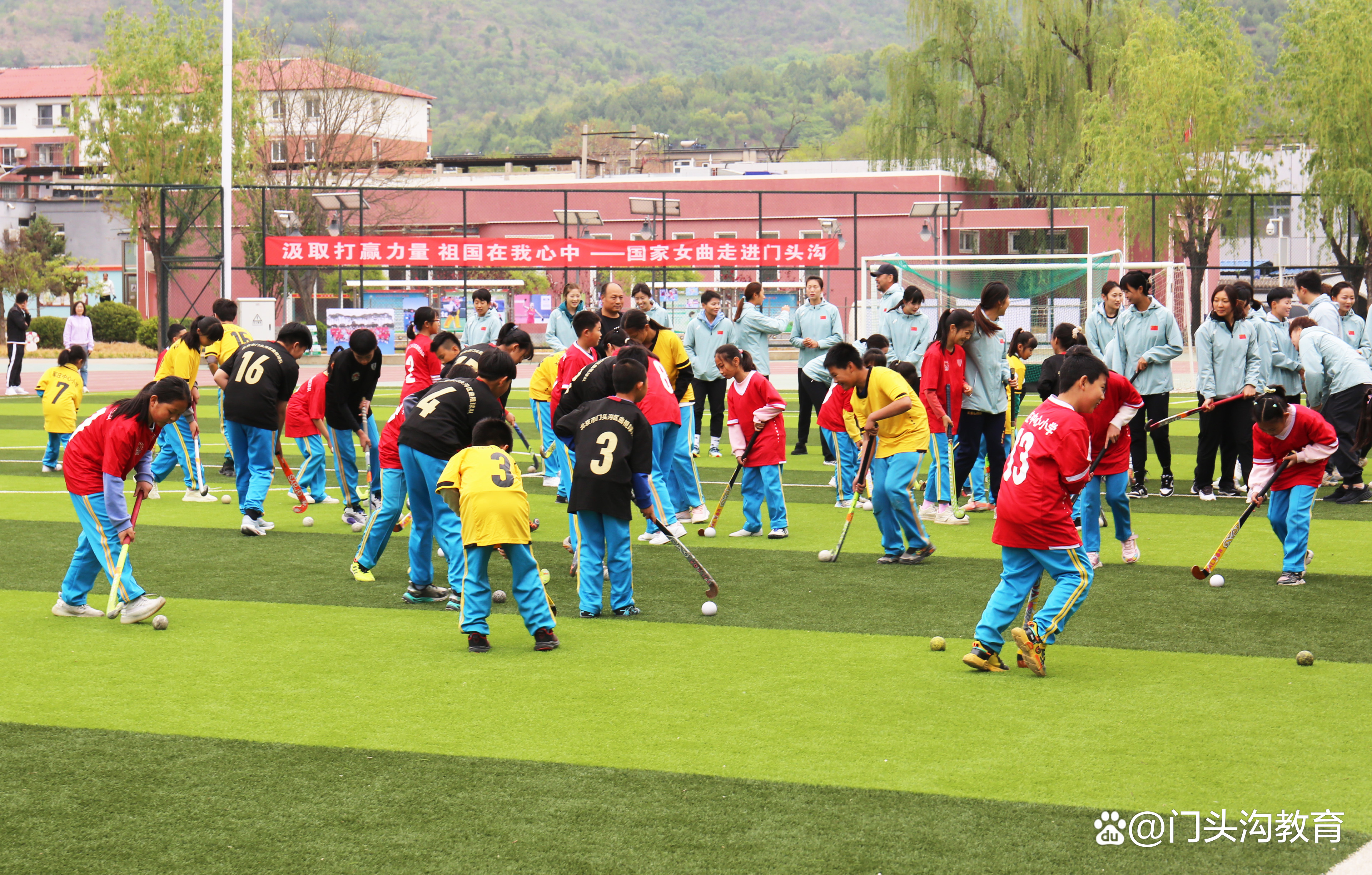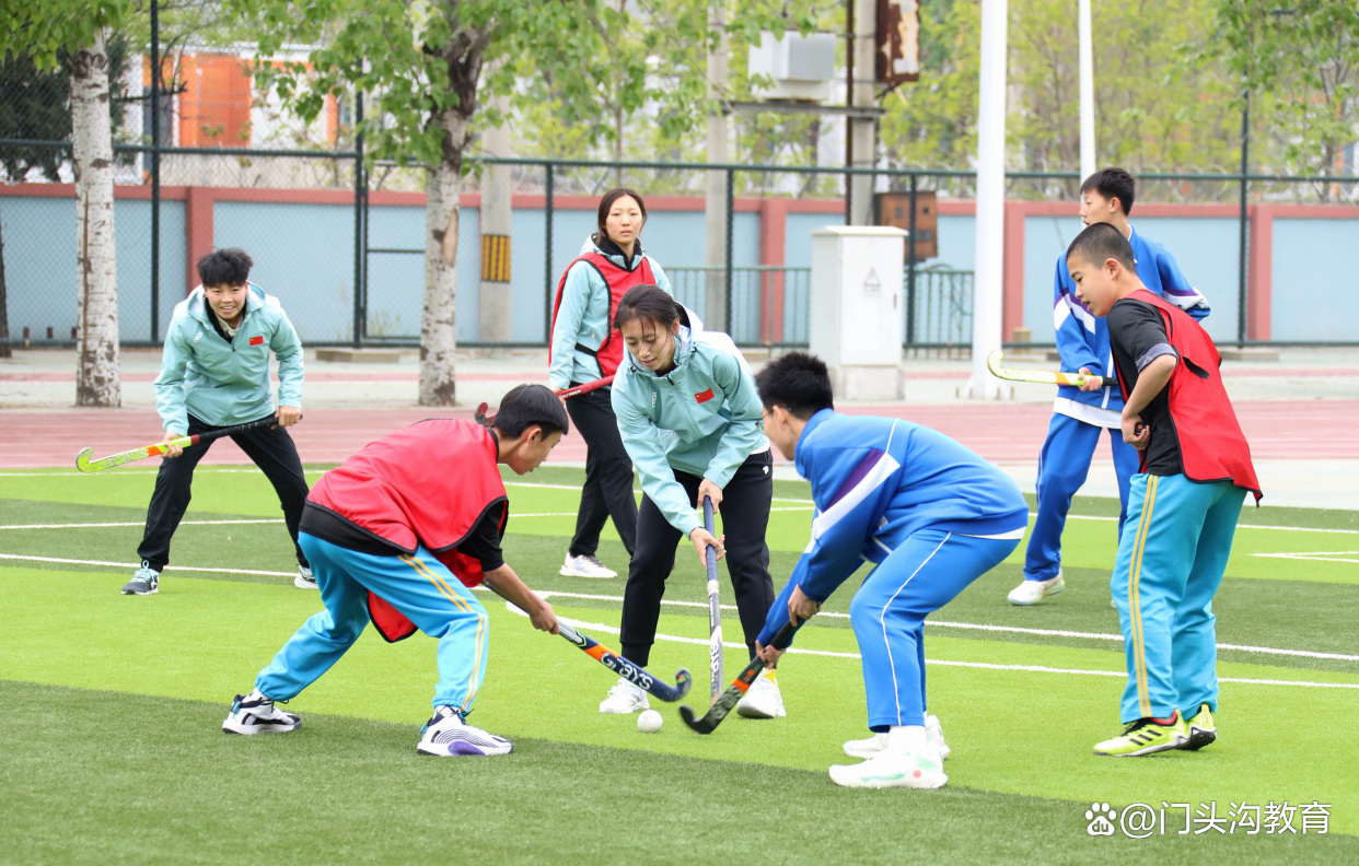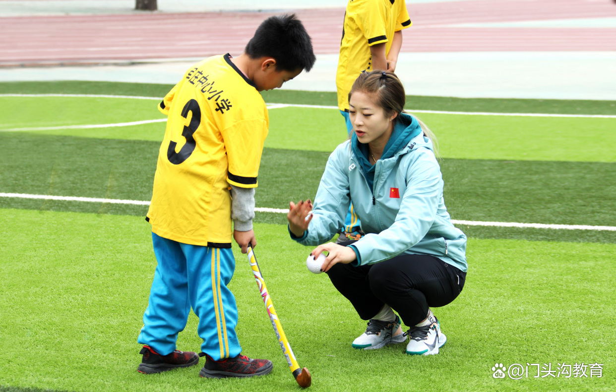 近日,国家女子曲棍球队走进门头沟区军庄中心小学,为学生开展曲棍球现场教学,并以比赛形式带领小队员们体验真实比赛情境。