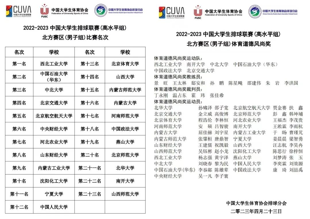 2022-2023中国大学生排球联赛北方赛区(高水平组)排球比赛
