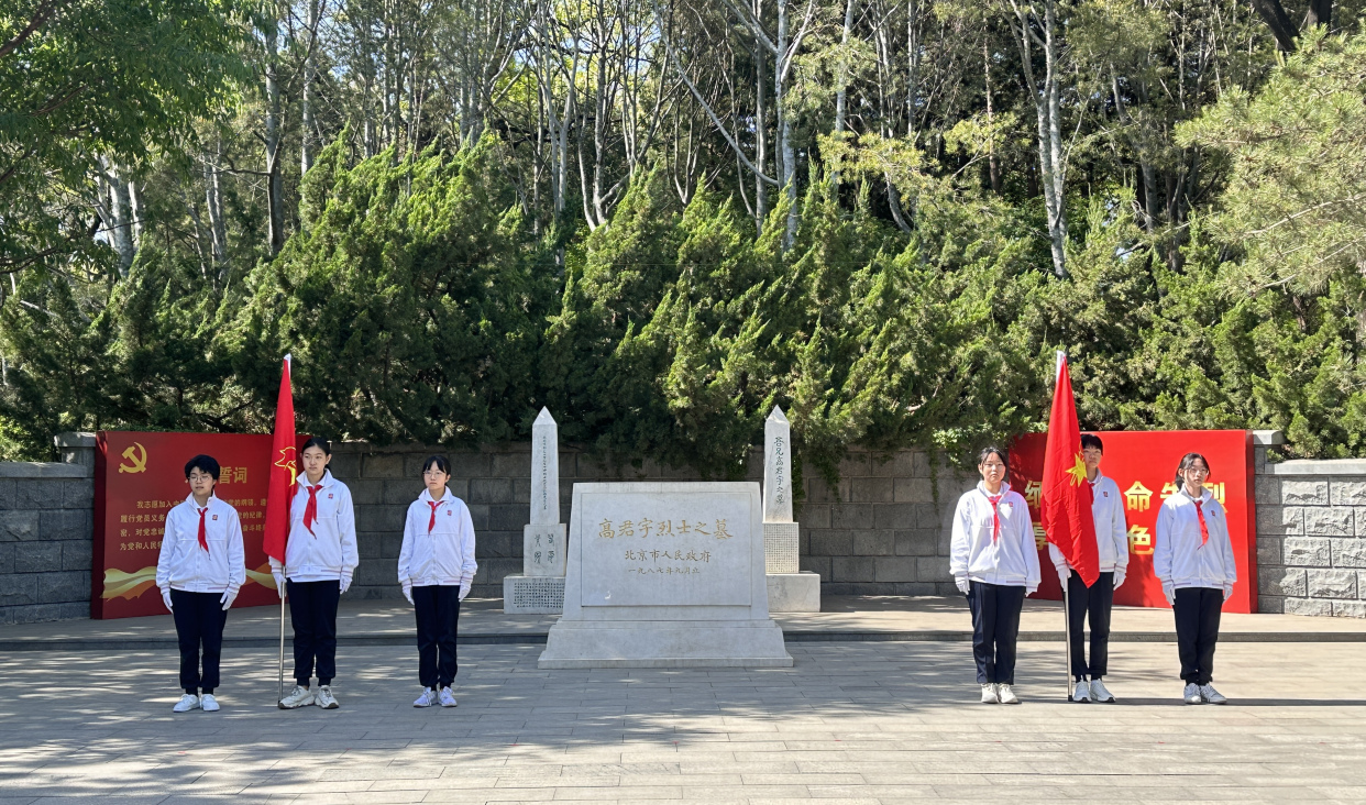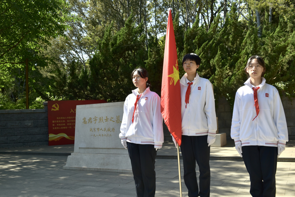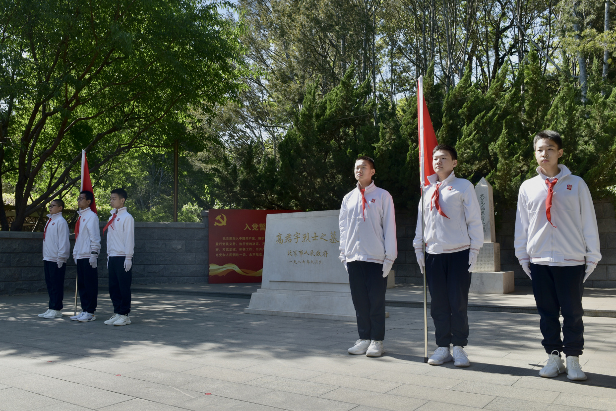4月29日,在市民游客欢庆五一节日来临之际,陶然亭公园迎来了这样一批特殊的小客人,他们身着整齐校服,佩戴鲜红的红领巾,高举少年先锋队队旗,昂首阔步来到公园高君宇烈士墓前,轮流为革命先烈站岗,他们就是来自北京市第十五中学的少先队员们。只见他们纹丝不动地站在高君宇烈士墓碑两旁,手握少先队队旗,目光坚定地目视前方,用自己的实际行动,缅怀革命先烈,发挥青春力量。