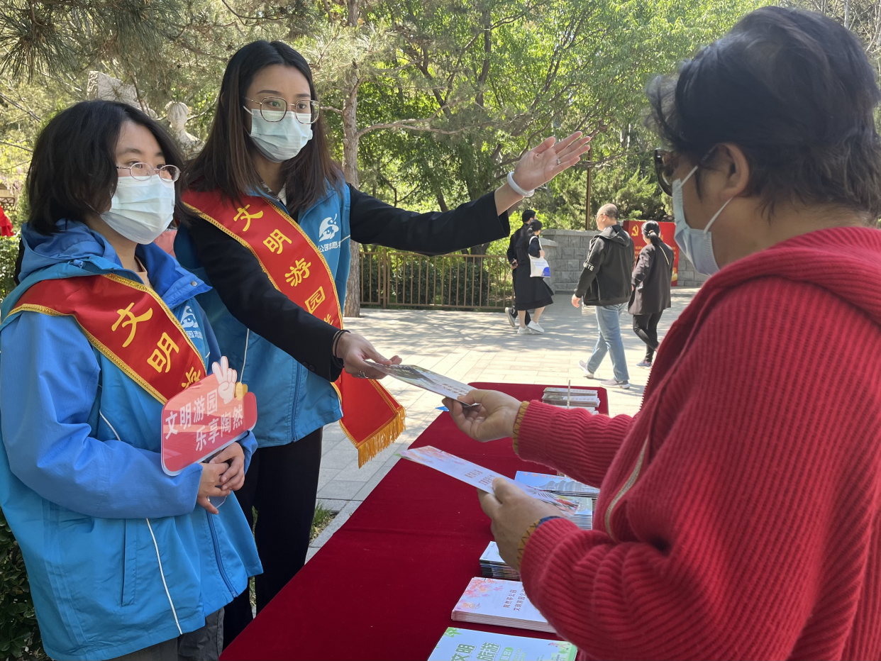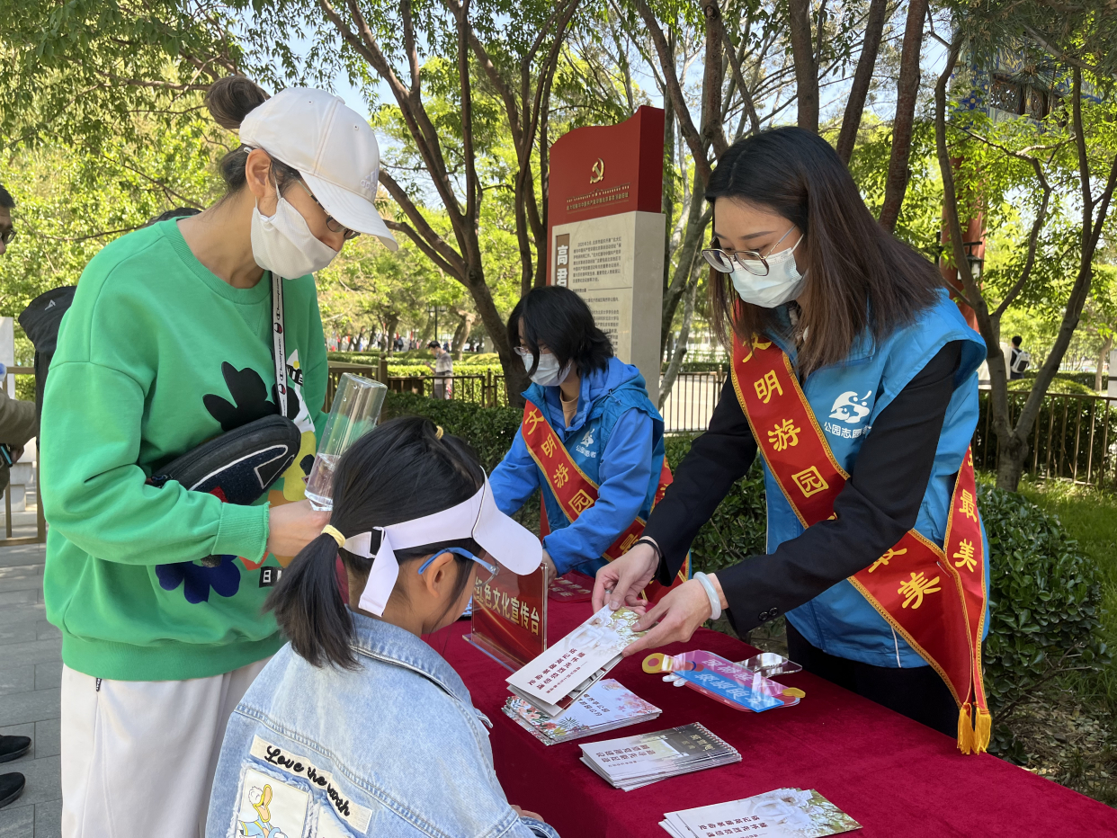 与此同时,为了更好地服务广大市民游客,结合学习贯彻习近平新时代中国特色社会主义思想主题教育活动,陶然亭公园找准找实着力点、落脚点,培育总结特色创新举措和鲜活经验,打造工作品牌,做好典型宣传和舆论引导,于五一节日期间开展“光辉照我心 永远跟党走”主题活动,结合公园陶然红色印记微展览,设立宣传台,为游客讲述红色故事,发放红色宣教品;公园慈悲庵、高君宇烈士墓在免费预约讲解的基础上推出义务讲解。