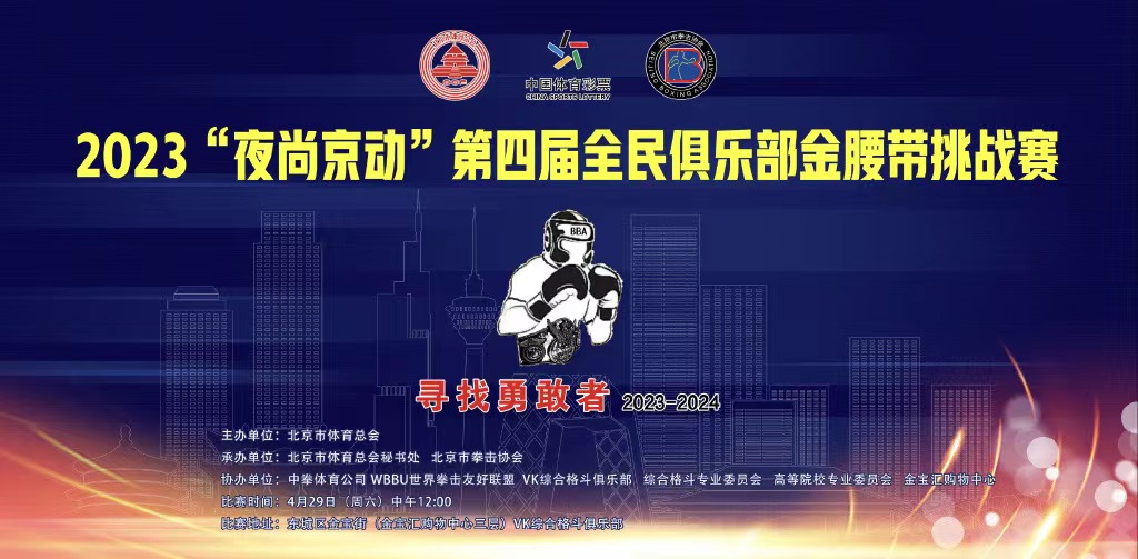 4月29日由北京市体育总会主办,北京市体育总会秘书处、北京市拳击协会承办,金宝汇VK综合格斗俱乐部协办的2023年“夜尚京动”第四届全民俱乐部金腰带挑战赛圆满结束。