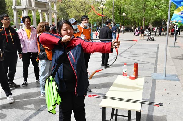 为提升趣味运动会的娱乐性和参与度,活动设置团队赛和个人赛两部分。团体赛以接力的方式进行,队员们依次完成同心圆、滚球速跑、平衡前进、手卷辘轳四个项目。个人赛以传统体育项目为代表,设有中幡平衡、眼急手快、翘关、传统弓射4个项目。