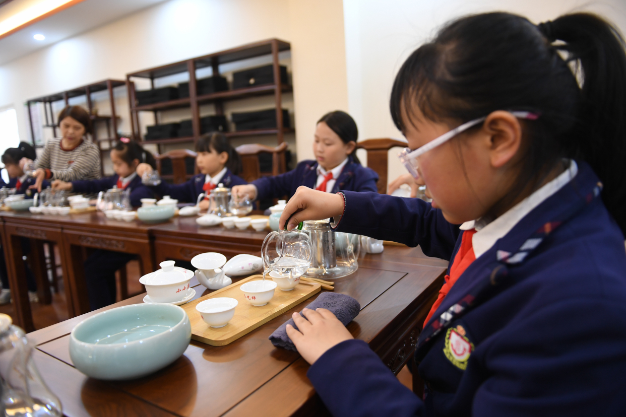 近年来,涿鹿县和符小学在推进素质教育过程中,开设围棋、茶艺、葫芦烙画、古筝、舞蹈等30多项活动。丰富多彩的校园社团活动,使每一名学生都能找到自己的兴趣爱好,促进学生全面发展。 (梁涛 朱文君 孙晓涵 摄)