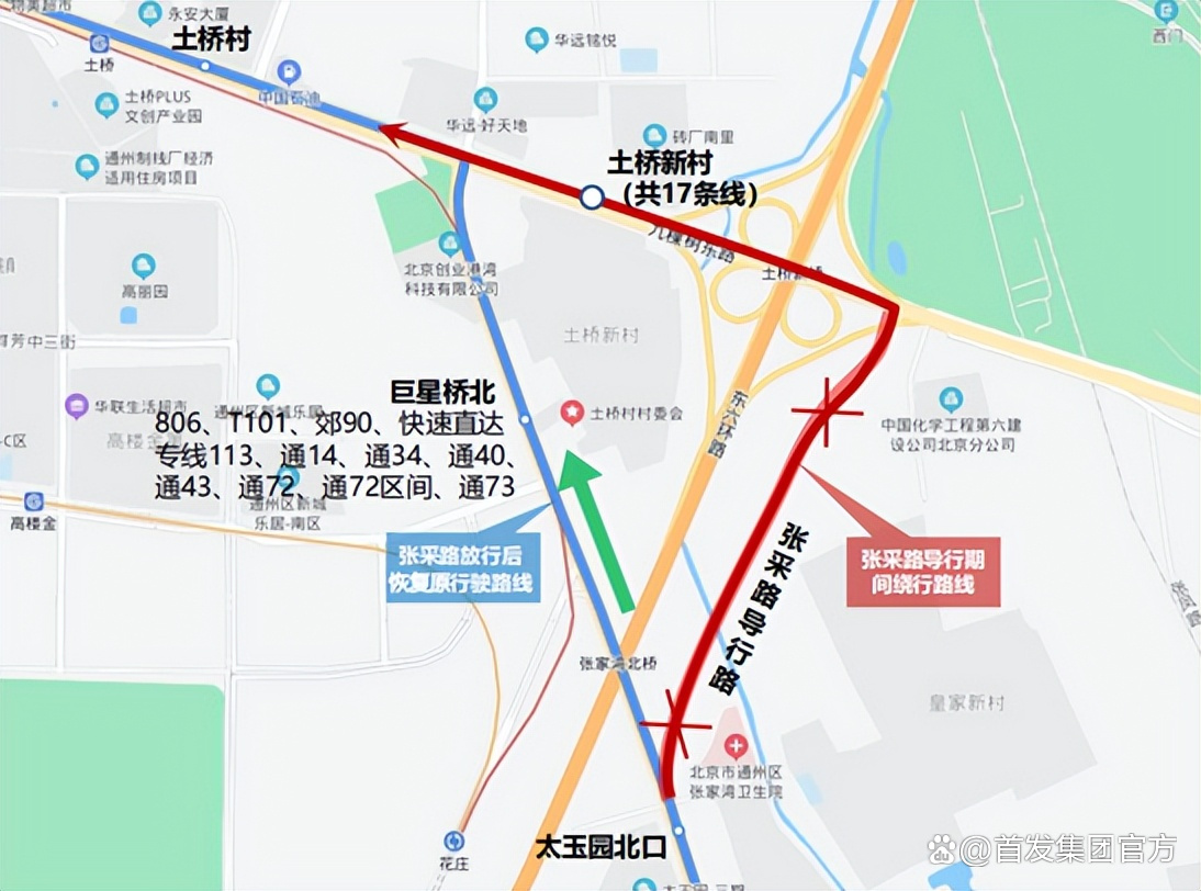 张采路(群芳南街路口—太玉园北口段)于2022年11月5日开始断行改造施工,在张采路旧桥拆除过程中,通过增设交通导行安全设施、增加安全巡视人员、加大六环路安全巡视频率、制定并演练安全应急预案等多重安全保障措施,对六环路先后进行了5次导行,保证车辆安全、顺畅通行。