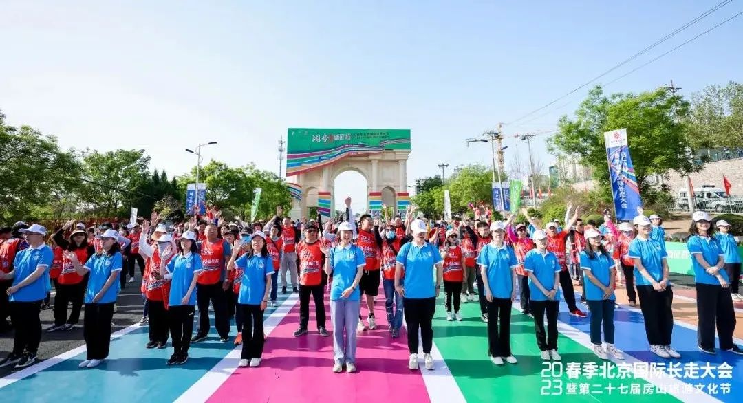 上午8时30分,活动启动仪式在全场万人热舞健身操中拉开帷幕,北京市徒步运动协会会长史绍洁,房山区委副书记、区长阳波,房山区政协主席魏广勋,北京冬奥组委志愿者部原副部长、市贸促会党组副书记、副主任张秀峰,市文化和旅游局二级巡视员马文等有关主办方领导和相关行业领域及群众代表一同鸣锣启动。