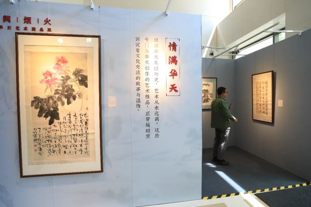 另一个展区的主题是“情满华天”,主要是艺术家专门为华天题写或创作的匾额、对联等作品,包括启功为鸿宾楼题的字、范曾为曲园酒楼题的“兰露菊英”等。