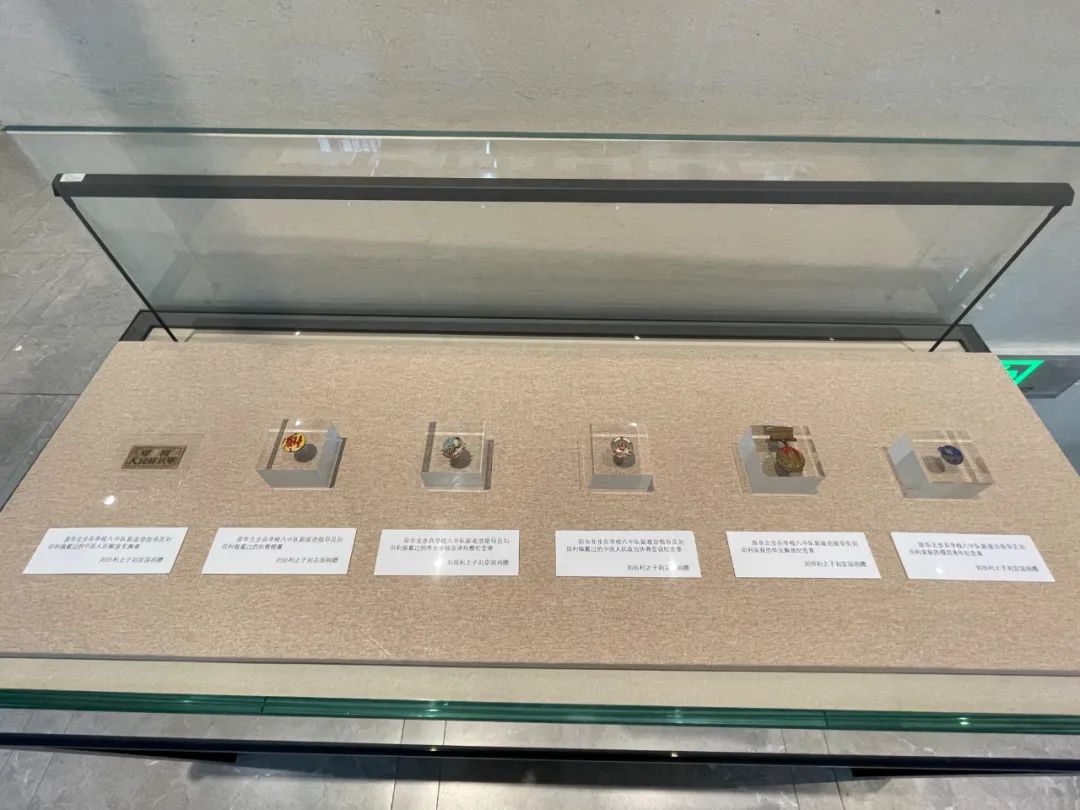 ▲以上文物史料由刘田利之子刘京国捐赠,从左至右分别为:原华北步兵学校八中队副政治指导员刘田利佩戴过的中国人民解放军胸章、纠察帽徽、华北步校京津纠察纪念章、中国人民政治协商会议纪念章,以及其荣获的华北解放纪念章、模范青年纪念章。