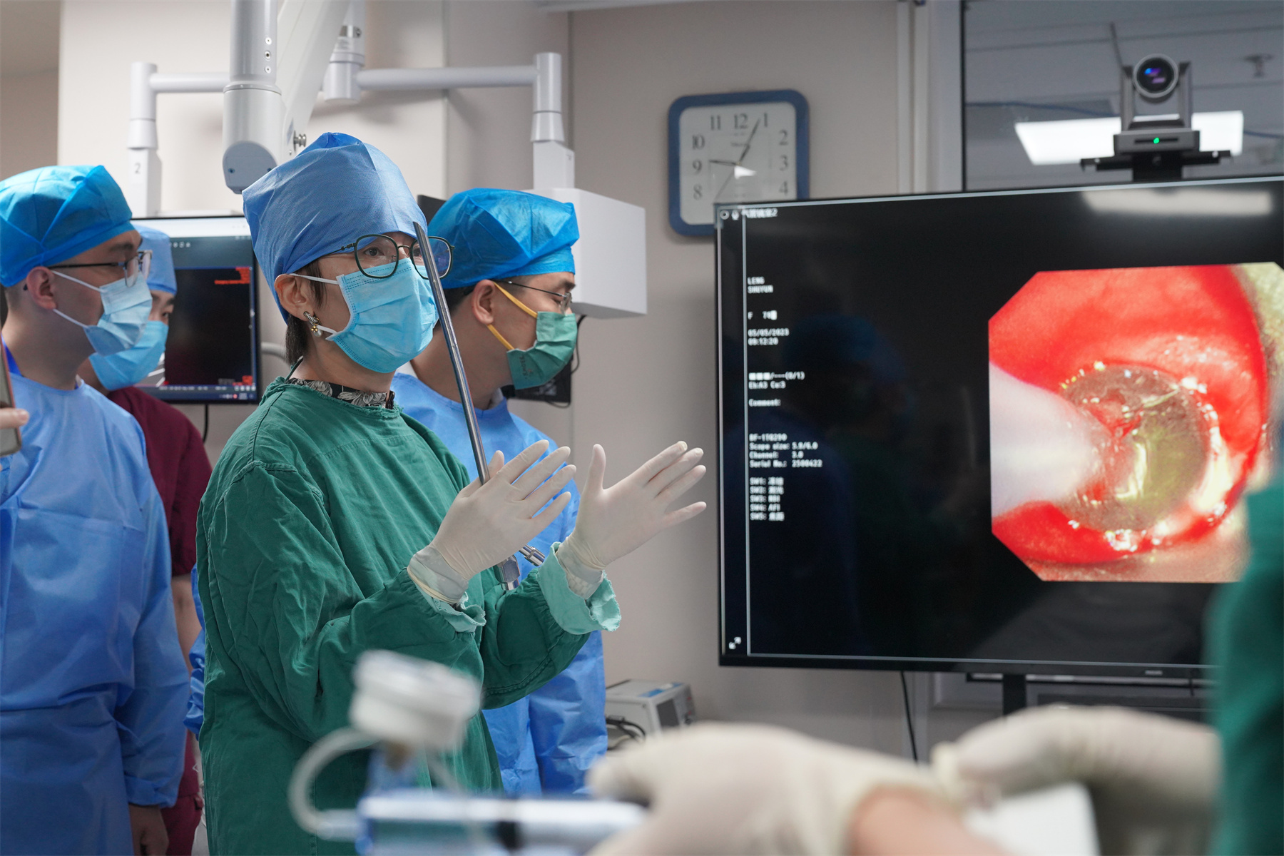 呼吸与危重症医学科2部主任张楠教授亲自为学员进行现场教学与手术演示,并就广大呼吸科医生关注的呼吸道出血专题进行了重点讲解,通过手术案例及现场演示止血球囊、气管支架等器材及与电子支气管镜、硬质镜技术的巧妙配合,阐述呼吸介入技术治疗大咯血的逻辑。学员们表示,如果能熟练掌握这些技术,处置呼吸道出血必将更有信心和底气。