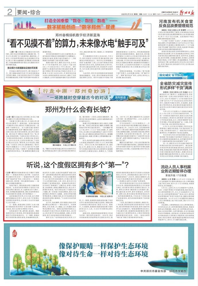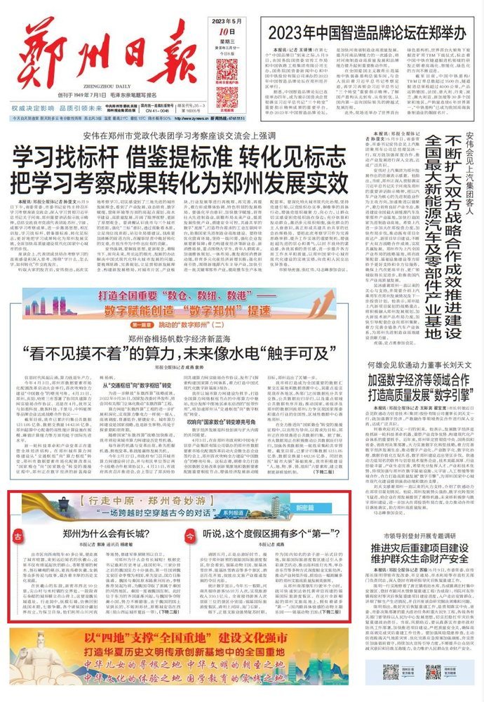 郑州,是华夏文明的重要发祥地;流经这里的黄河,是中华民族的摇篮。生于斯、长于斯的你,对家乡郑州是否真的了解?时光荏苒,沧海桑田,它是否还是你记忆中的模样?巍巍商都,闪耀着中华文明的光彩,为古都郑州点亮当今、照见未来。为给读者展现一个立体、生动的“郑州”,本报今起推出《行走中原·郑州奇妙游》“一场跨越时空穿越古今的对话”系列报道,以全市各区县(市)为区划,从小处入手讲述郑州故事。