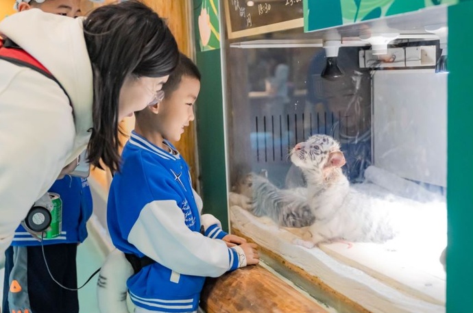 五一假期,银基动物王国的“白虎六胞胎”和银基冰雪世界的“白眉企鹅”与游客正式见面,吸引众多家长带着孩子前来。