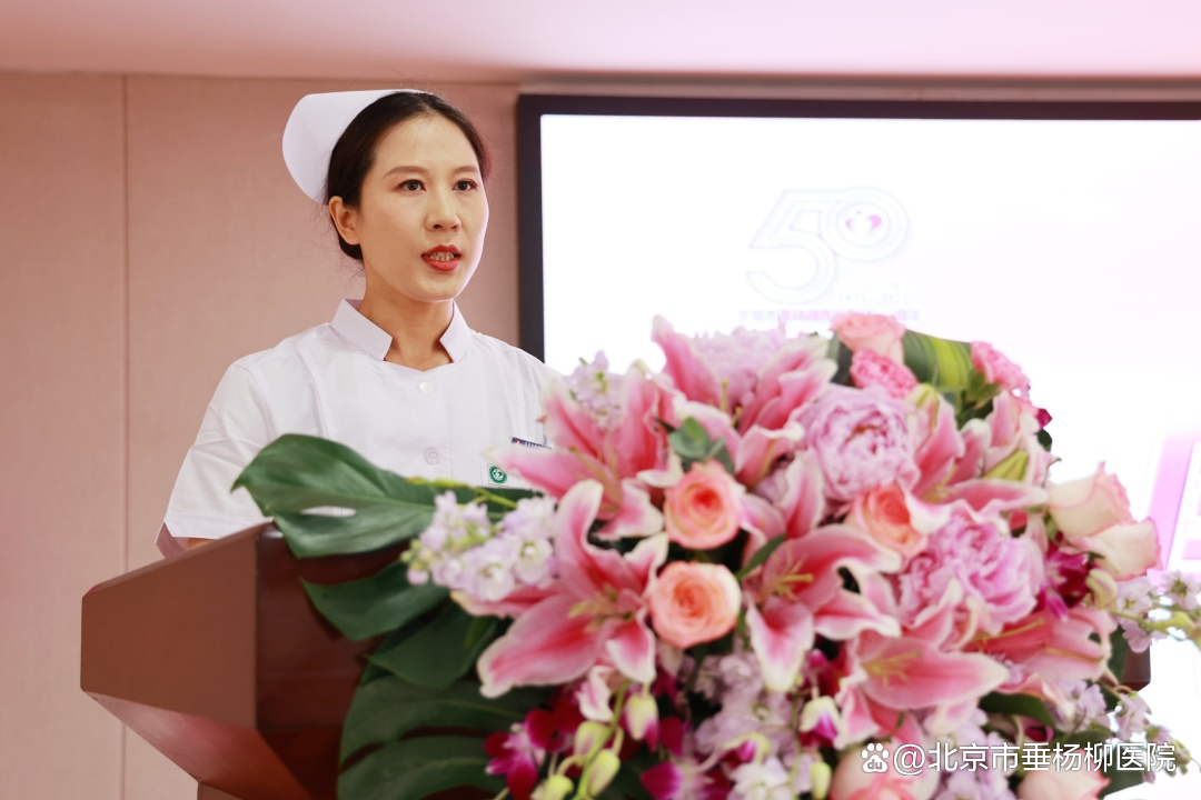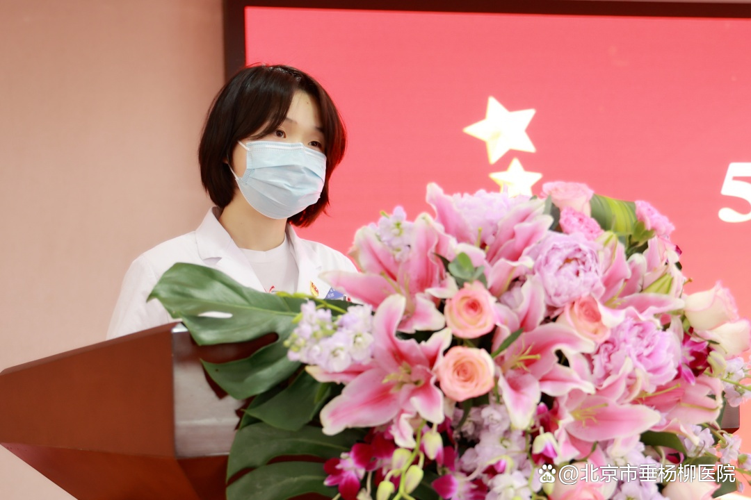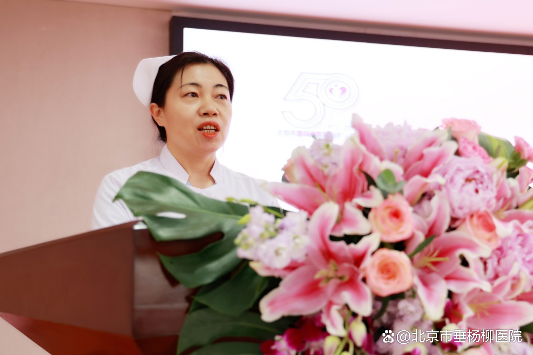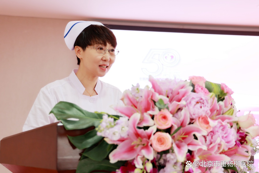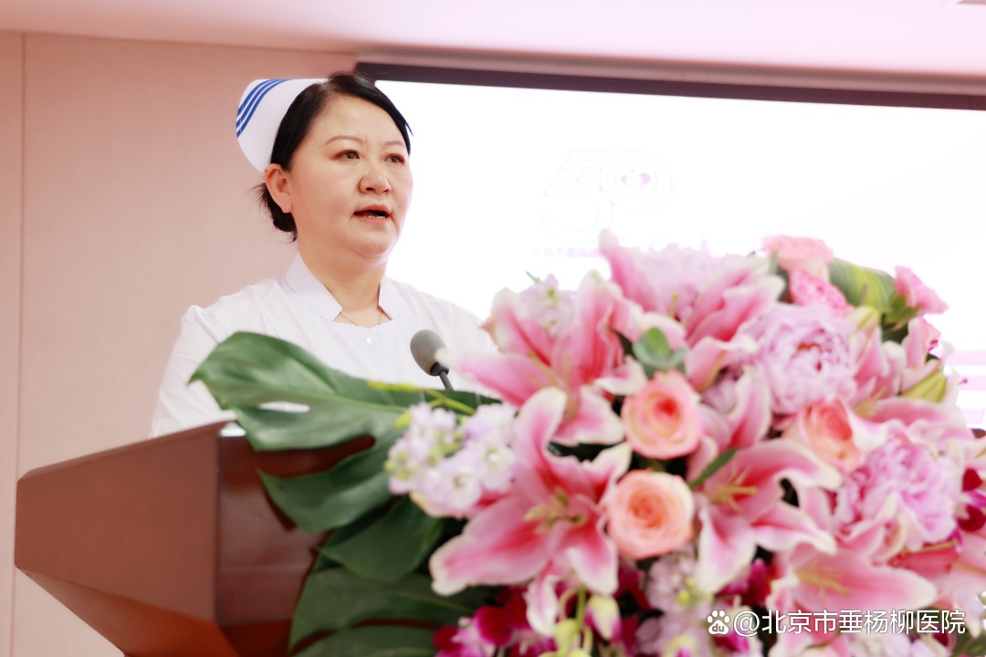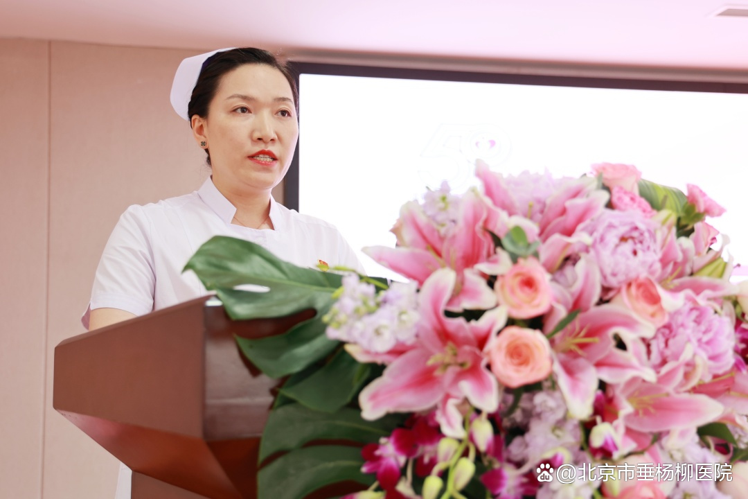李雪玉代表朝阳区卫健委党委,向广大护理工作者表示节日的祝福。她讲到,医院护理工作者在过去的疫情防控工作中做出了艰苦卓绝的付出和努力,在保障人民群众生命健康,坚决履行护理义务上做出了成绩。她表示,希望医院护理工作者继续发扬艰苦奋斗,勇往直前的精神,努力提升服务水平,为建设健康朝阳做出更多贡献。