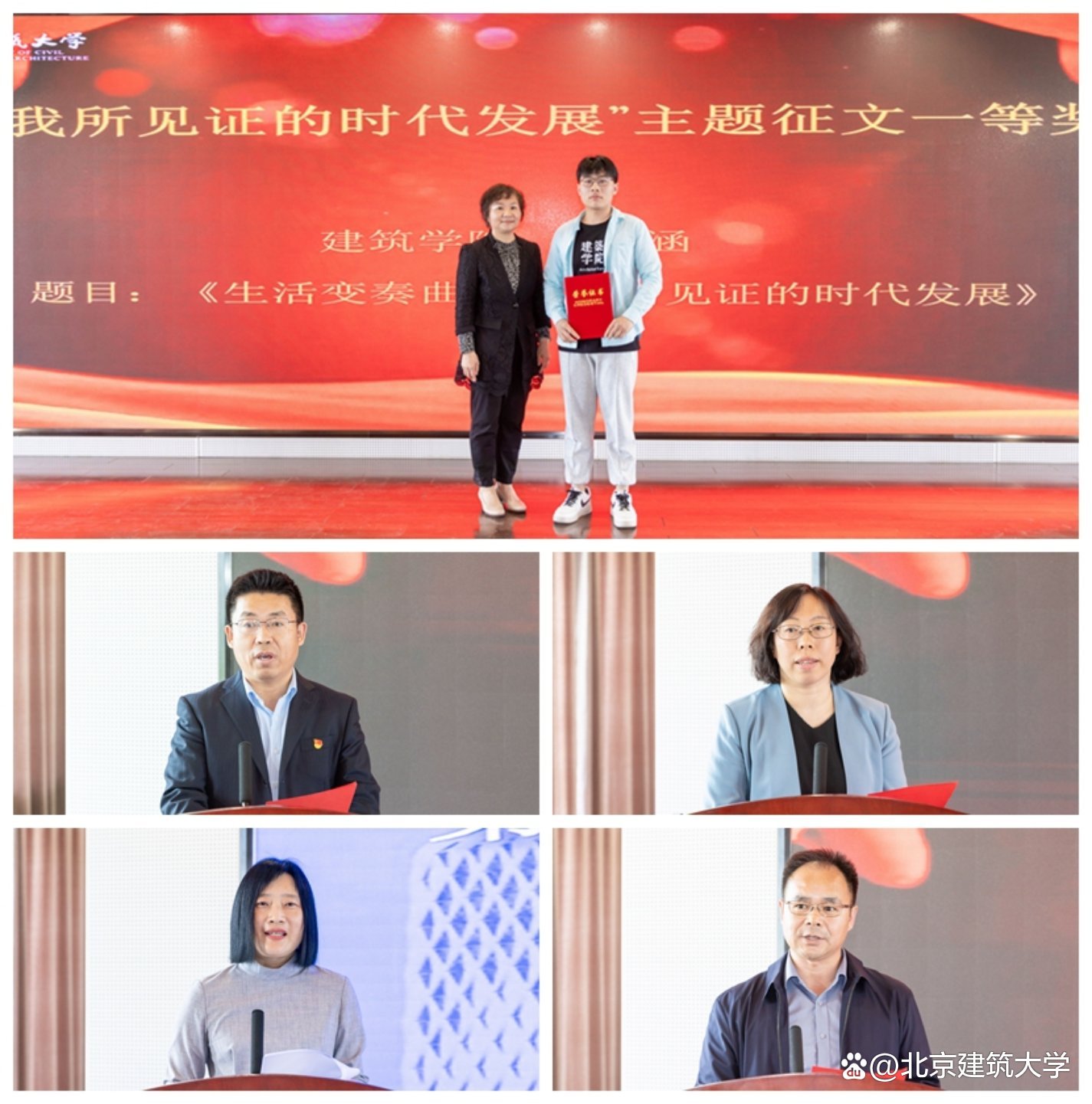 学校2022年度图书借阅量位居榜首的环能学院教师张伟老师基于时间、地点、人物三个要素分享了自己多年的阅读方法和阅读体验,希望大家从书籍与文字中感受力量和美好,感受读书的快乐,获得更有高度、更有境界、更有品位的人生。“我所见证的时代发展”征文比赛一等奖获得者、建筑学院建研224班崔涵同学讲述了自己的阅读故事;图书馆学生馆员工作委员会社长、建筑学院建实202班王毅骐宣读了《书香校园倡议书》,号召师生共赴书香之约,开启更多美好。