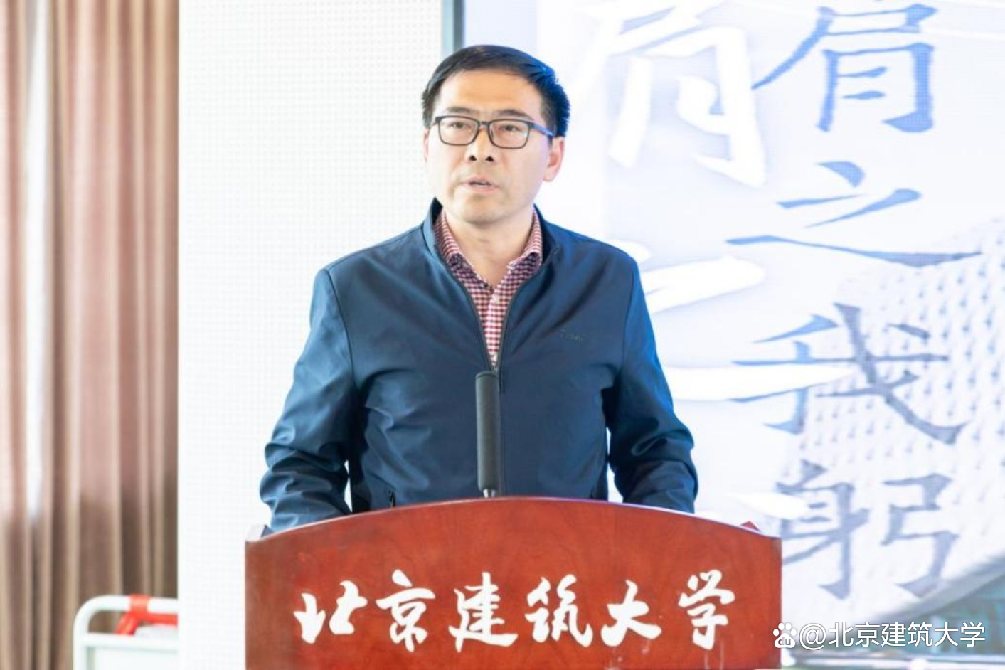 高岩代表读书活动组委会致辞。他说,阅读是一个国家、一个民族精神成长、文明传承的重要途径,文化传承是高校图书馆的重要职责。作为国家级“全民阅读示范基地”,北京建筑大学从2007年开始每年举办“开卷”读书系列活动,十七年来紧扣时代主题,凸显“北京味十足”“建筑味十足”“书香味十足”的学校特色,成为高校开展阅读推广的典范之一。他表示,学校图书馆将一如既往加强阅读引领,涵育阅读风尚,通过“读者服务月”聚焦书香校园建设,提升服务品质,在第十七届“开卷·肩之我躬”读书活动中举办“中华传统经典诵写讲大赛”、“年度阅读之星勤学之星评选表彰”、“主题征文大赛”、“建筑文化讲座”、“教工读书沙龙”、“知本微讲堂”等系列活动,以书香建设助力学校发展。